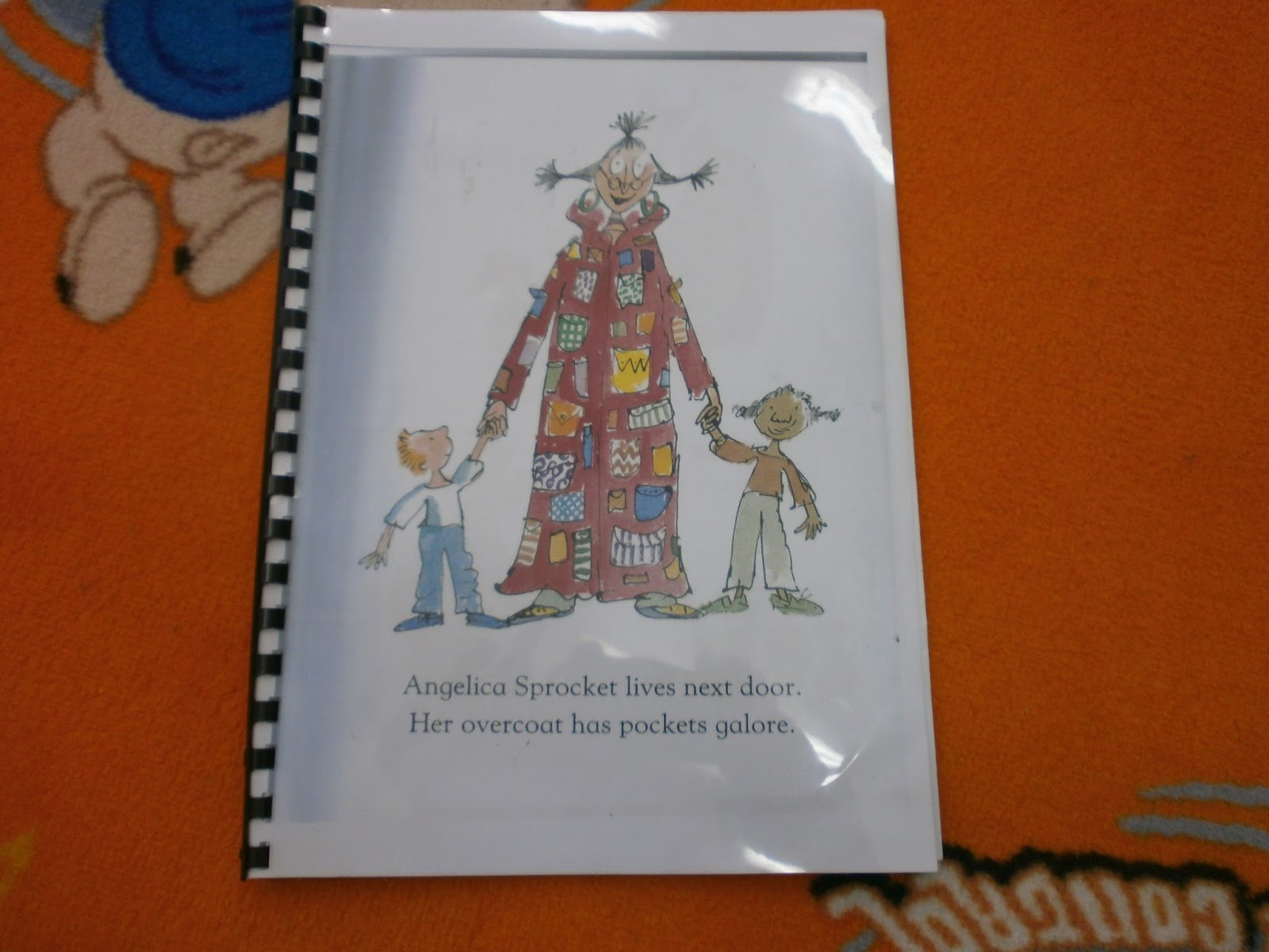 Αργότερα, διαβάσαμε το παραμύθι της Ατζέλικας, η οποία φοράει ένα φόρεμα με μαγικές τσέπες και βγάζει διάφορες εκπλήξεις μέσα απο αυτές. Μια μέρα λοιπόν, θα επισκεφθεί το νηπιαγωγείο μας και θα μας φέρει μια έκπληξη. Τι πιστευέτε ότι θα κρύβει η τσέπη της Ατζέλικας? Παρακάτω ακολουθούν οι απαντήσεις των παιδιών..
