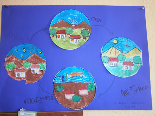Ξεκινήσαμε τη νέα χρονια μελετώντας την εναλλαγή της ημέρας με τη νύχτα και στη συνέχεια περάσαμε στις τέσσερις εποχές με τους μήνες της καθεμιάς.