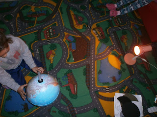 Ακολουθεί το πέιραμα που πραγματοποιήσαμε με το φακό και την υδρόγειο σφαίρα, για να αντιληφθούν τα παιδιά σε ποιο σημείο της γης είναι μέρα και σε ποιο σημείο ειναι νύχτα την ίδια στιγμή.