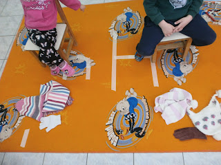 Ξεκινήσαμε συζητώντας για τα ρούχα που φορούμε τον χειμώνα καθώς και τα μέσα θέρμανσης που έχει ο καθένας στο σπίτι του για να ζεσταίνεται. Έπειτα, συγκεντρώσαμε διάφορα αντικείμενα και ρούχα του χειμώνα σε μια σακούλα και με κλειστά μάτια προσπαθούσαμε να βρούμε ποια είναι.
