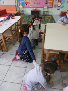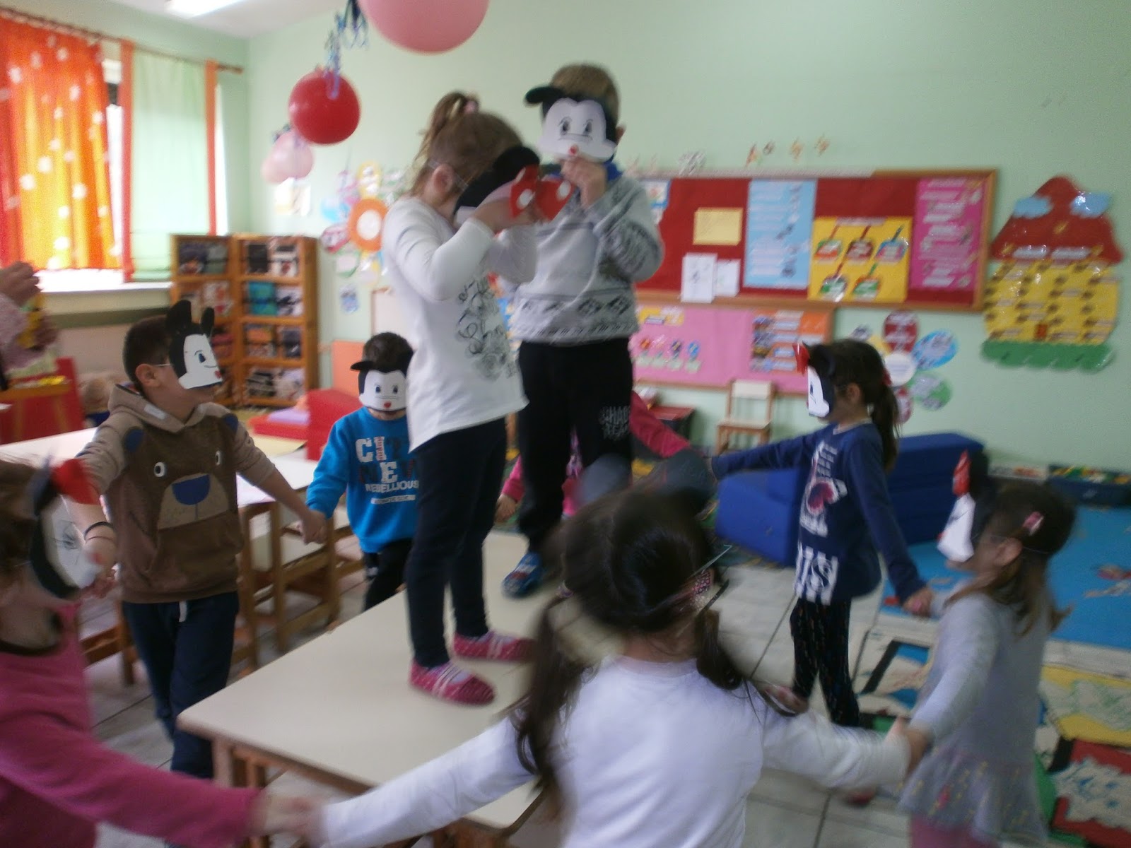 Την ημέρα της Τσικνοπέμπτης παίξαμε ένα παιχνίδι-παραλλαγή των μουσικών καρεκλών με διάφορα αποκριάτικα αξεσουάρ.