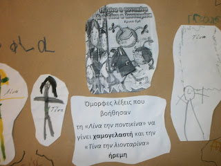 Στη συνέχεια, διαβάζουμε το παραμύθι “η Λίνα η ποντικίνα και η Τίνα η λιονταρίνα” και κάνουμε μια ομαδική εργασία με όμορφες λέξεις που βοήθησαν τη Λίνα την ποντικίνα να γίνει χαμογελαστή και την Τίνα τη λιονταρίνα να γίνει ήρεμη!