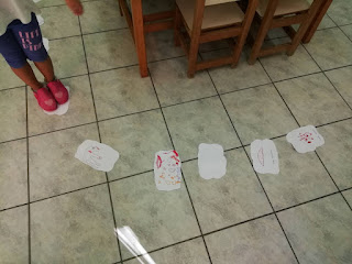 Και για να εμπεδώσουμε όλα αυτά που είπαμε παίξαμε ένα επιδαπέδιο παιχνίδι. Τα παιδιά ζωγράφισαν στις πατούσες του λύκου σωστούς και λάθος τρόπους συμπεριφοράς. Στόχος μας είναι να φτάσουμε στο τέλος της διαδρομής…τα παιδιά ρίχνουν το ζάρι και ξεκινούν..κάθε φορά που συναντούν επιθυμητή συμπεριφορά κάνουν ένα βήμα μπροστά..κάθε φορά που πατάνε σε λάθος συμπεριφορά κάνουν ένα βήμα πίσω Στο τέλος όλοι είπαμε τους σωστούς κανόνες και συμφωνήσαμε να τους τηρούμε για να είμαστε μια ευτυχισμένη παρεούλα!