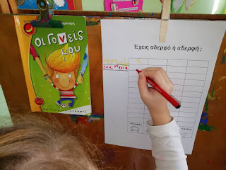 Συζητήσαμε για τις οικογένειές μας, από πόσα μέλη αποτελούνται, ποιοι μένουν μαζί μας, πως περνάμε ευχάριστα με την οικογένειά μας..