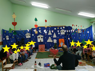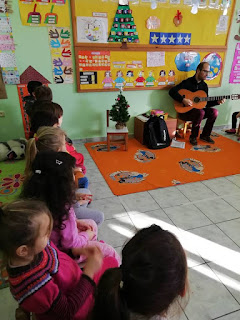 Μας ταξίδεψε στον κόσμο της μουσικής και τραγουδήσαμε μαζί με τη συνοδεία της κιθάρας διάφορα Χριστουγεννιάτικα τραγούδια. Τα παιδιά ήταν κατενθουσιασμένα και τον περίμεναν με ανυπομονησία μέχρι την επόμενη εβδομάδα,που θα ξαναερχόταν.