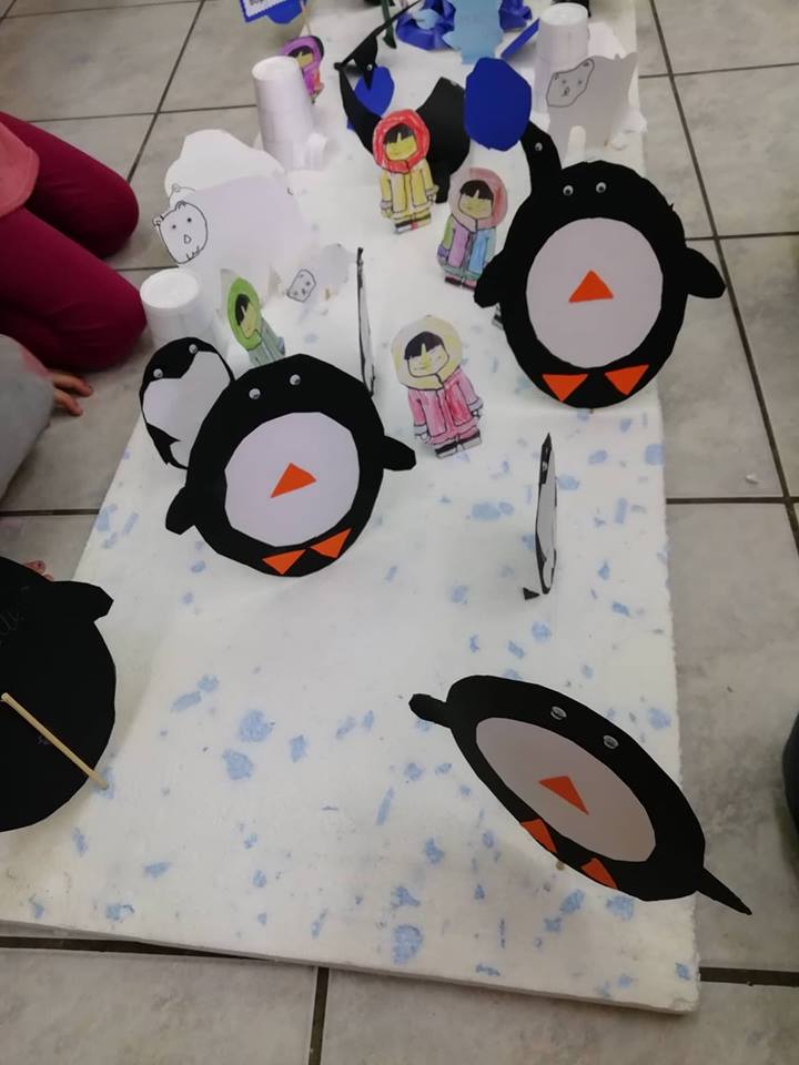 Ομαδική εργασία, μακέτα με τα ζώα που ζουν στο Βόρειο και Νότιο Πόλο.