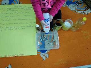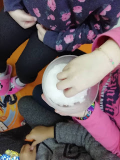 Μιας και είδαμε άσπρη μέρα…χιόνισε..είπαμε να πειραματιστούμε με το χιόνι, γιατί δε μας δίνεται συχνά η ευκαιρία. Η χαρά των παιδιών μεγάλη… Το αγγίξαμε, το μυρίσαμε, το παρατηρήσαμε.