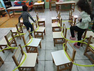 5)Γινόμαστε κουνελάκια(πηδάμε με τα δύο πόδια) και προσπαθούμε να φτάσουμε στο τέρμα στη φωλιά μας.
