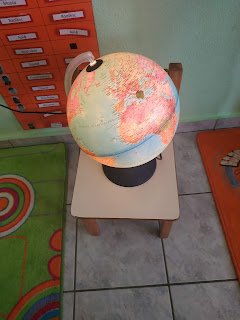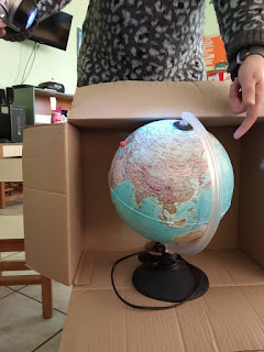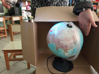 Πήραμε ένα χαρτοκιβώτιο και τοποθετήσαμε την υδρόγειο σφαίρα..