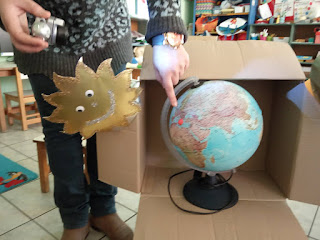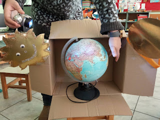 το ιδανικό θα ήταν, να ήμασταν σε ένα σκοτεινό μέρος..παρόλα αυτά ο φακός βοήθησε και τα παιδιά κατανόησαν την εναλλαγή μέρας και νύχτας.