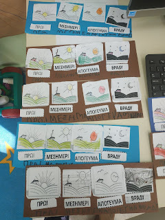 Βάζουμε στη σωστή σειρά τις εικόνες:πρωί, μεσημέρι, απόγευμα, βράδυ.
