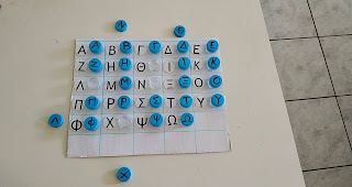 Μοιράζουμε 10 καπάκια (ή ότι άλλα ίδια υλικά έχουμε σε ποσότητα) σε κάθε παιδί.