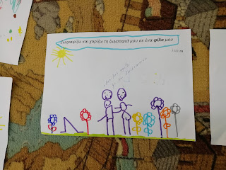 Παίξαμε πολλά ψυχοκινητικά παιχνίδια για τη φιλία, τη συνεργασία και την ομαδικότητα. Ανταλλάξαμε τις ζωγραφιές μας