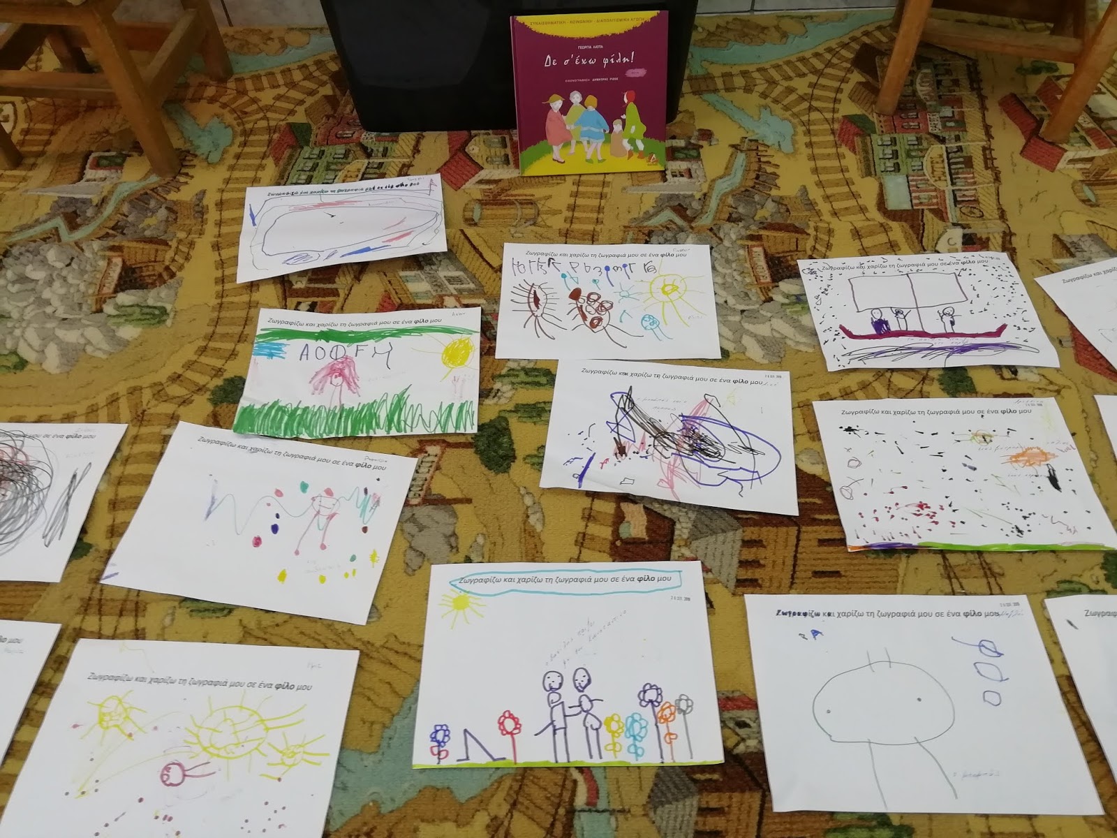 Παίξαμε πολλά ψυχοκινητικά παιχνίδια για τη φιλία, τη συνεργασία και την ομαδικότητα. Ανταλλάξαμε τις ζωγραφιές μας