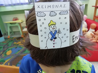 Περιγράψαμε εικόνες, μιλήσαμε για τον καιρό, την ενδυμασία, τα χειμερινά σπορ. ακούσαμε τραγούδια,παίξαμε χειμωνιάτικα παιχνίδια, διαβάσαμε ποιήματα, κάναμε ατομικές και ομαδικές εργασίες (ιδέες κατασκευών από το διαδίκτυο).