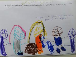 Γνωρίσαμε τους 12 μήνες. Τους σειραθετήσαμε ξεκινώντας από τον Ιανουάριο, τους ταξινομήσαμε ανάλογα με την επόχή που ανήκουν,διαβάσαμε τις Ιστορίες “Οι 12 μήνες αθλητές” και “Η Κυρά Καλή και οι 12 μήνες”.Τις ζωγραφίσαμε, τις δραματοποιήσαμε και φτιάξαμε μία ομαδική εργασία. Ακούσαμε τραγούδια και.ο καθένας παρουσίασε τον αγαπημένο του μήνα.