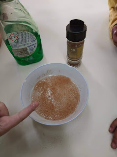 | Πείραμα με νερό, κανέλα και απορρυπαντικό πιάτων ….συμπέρασμα τα μικρόβια (η κανέλα) εξαφανίζονται μόλις βάλουμε το απορρυπαντικό πιάτων |