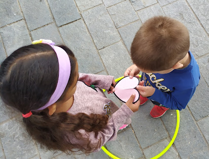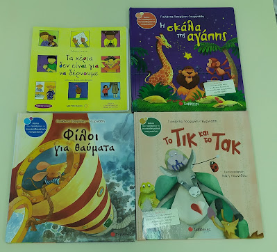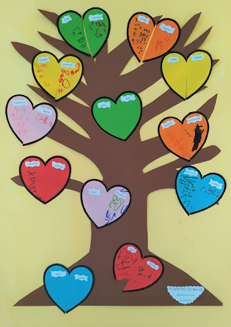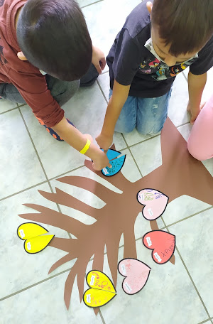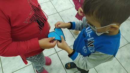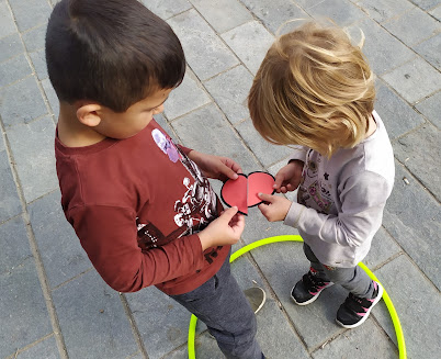 Στη συνέχεια, διαβάσαμε τα αξιόλογα βιβλία της Γιολάντας Τσορώνη – Γεωργιάδη, που προάγουν τη συναισθηματική νοημοσύνη των παιδιών, δίνοντας έμφαση στο βιβλίο “Το Τικ και το Τακ”, μέσω του οποίου προέκυψαν πολλές και ενδιαφέρουσες δραστηριότητες. Στο βιβλίο, η καρδούλα του ήρωα πονάει και παρουσιάζεται μισή όταν ξαφνικά μαλώνει με τον καλύτερο του φίλο. Παίξαμε λοιπόν πολλά παιχνίδια με τις χρωματιστές καρδούλες που φτιάξαμε και μέσα στην τάξη αλλά και στην αυλή.