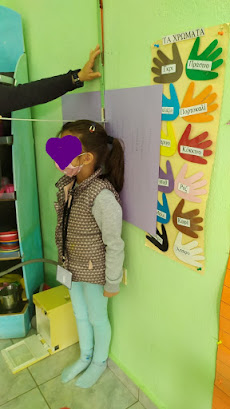 Στη συνέχεια, θέλοντας να φτιάξουμε τη δική μας προσωπική ταυτότητα, μετρήσαμε το ύψος μας και το βάρος μας και μιλήσαμε για τα όργανα μέτρησης που χρειάζονται, το μέτρο και τη ζυγαριά.