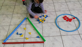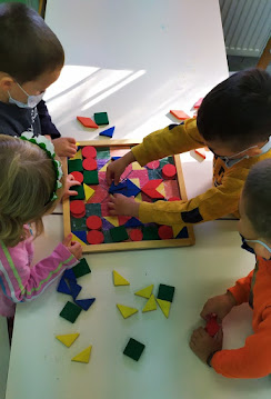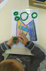 Παράλληλα με τα άλλα θέματα δουλέψαμε και τα σχήματα πιο ελεύθερα στις πρωινές κυρίως δραστηριότητες, δίνοντας βάση περισσότερο στα τέσσερα βασικά σχήματα, τον κύκλο, το τρίγωνο, το τετράγωνο και το ορθογώνιο παραλληλόγραμμο.