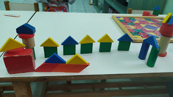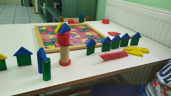 ενώ τα παιδιά αφέθηκαν ελεύθερα να φτιάξουν δικές τους δημιουργίες έχοντας στη διάθεσή τους πολλά ξύλινα τουβλάκια σε αυτά τα σχήματα.