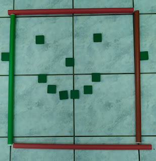Ψάξαμε να βρούμε αντικείμενα που μοιάζουν με αυτά τα σχήματα μέσα στην τάξη μας, φτιάξαμε με τα σχήματα αυτά προσωπάκια που όλα τα χαρακτηριστικά τους είχαν το ίδιο σχήμα, δηλαδή πρόσωπα που όλα τα χαρακτηριστικά τους ήταν κυκλικά, τρίγωνα, τετράγωνα και ορθογώνια.