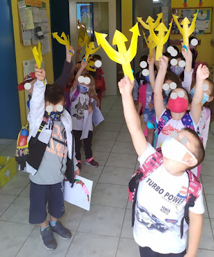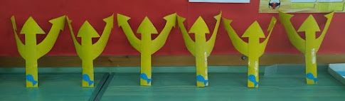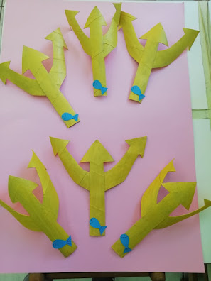 Διαβάσαμε πολλές ιστορίες από τη μυθολογία κι επειδή άρεσαν πολύ στα παιδιά φτιάξαμε μια χάρτινη τρίαινα,που αποτελεί ένα από τα σύμβολα του Ποσειδώνα.