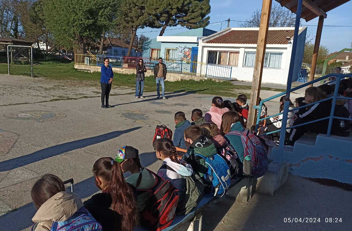 Παράλληλα, και πάλι στα πλαίσια της Ομαλής Μετάβασης στο Δημοτικό στον κοινό αύλειο χώρο του Νηπιαγωγείου και του Δημοτικού, τα παιδιά παρακολούθησαν παρουσίαση Κτηνιάτρου όπου έμαθαν πληροφορίες για κατοικίδια και άγρια ζώα και την φροντίδα αυτών, αλλά έκαναν και τις δικές τους μοναδικές ερωτήσεις.