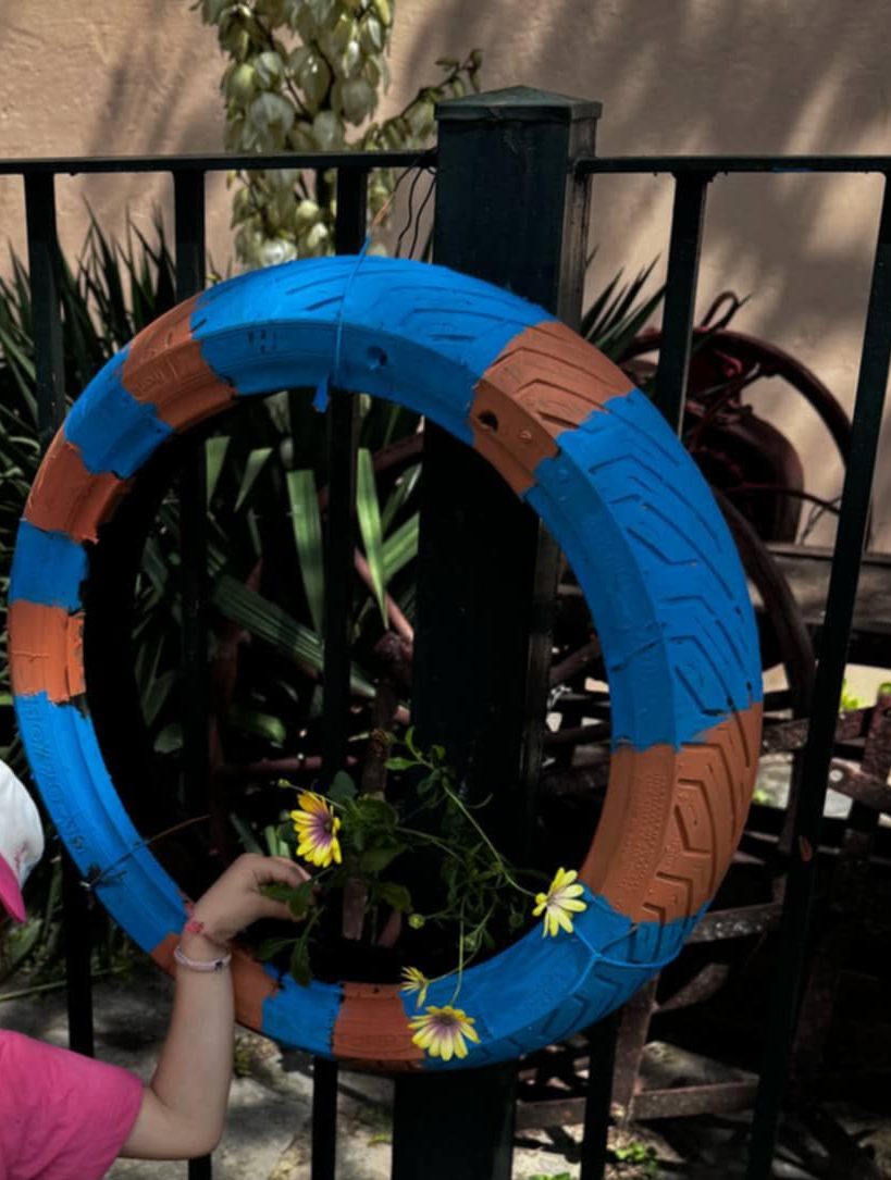 - οι γονείς/κηδεμόνες των μαθητών μαζί με τα παιδιά τους με μεράκι χρωμάτισαν μαζί με τους εκπαιδευτικούς, σε απογευματινό καλλιτεχνικό εργαστήρι τα ελαστικά για να φυτέψουν τα παιδιά μέσα λουλουδάκια.