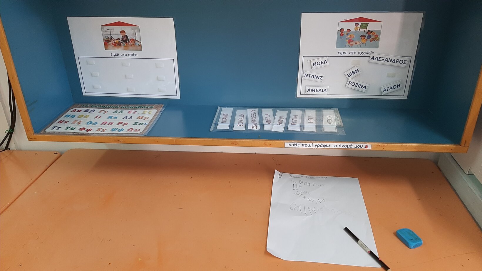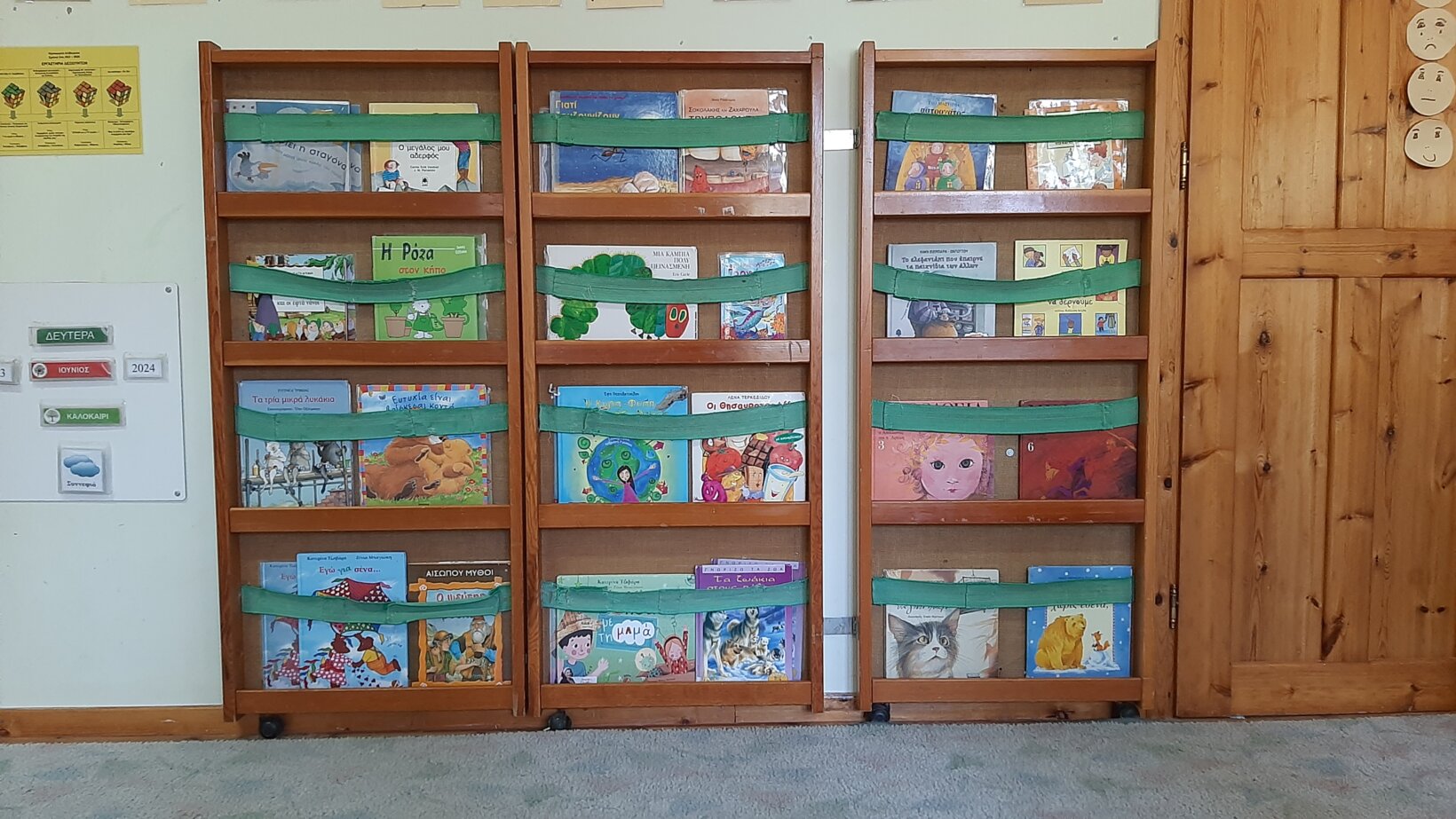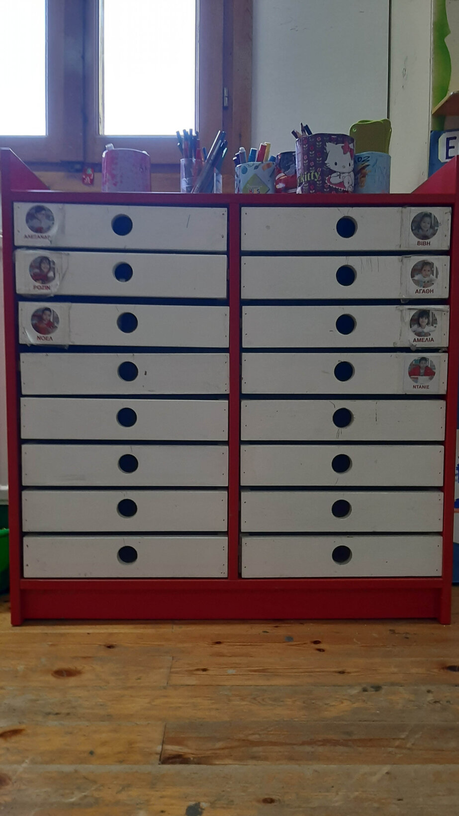 Αίθουσα διδασκαλίας Παρατίθενται ορισμένες φωτογραφίες από την αίθουσα διδασκαλίας του νηπιαγωγείου μας. Βιβλιοθήκες Κέντρο μάθησης γραφής και παρουσιολόγιο Πίνακας αναφοράς με καρτέλες ημερομηνίας και καιρού Κέντρο μάθησης μουσικής Ντουλάπα ρούχων εικαστικών Κέντρο μάθησης Τ.Π.Ε. – Ηλεκτρονικός υπολογιστής παιδιών Ράφι αποθήκευσης φακέλων εργασιών Συρταριέρα παιδιών Εξοπλισμός ρομποτικής