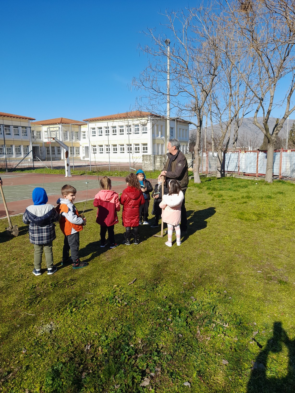 Τα παιδιά προσκάλεσαν τον κο Σταμάτη Μαλάκο, γεωπόνο και Πρόεδρο του Συλλόγου Γονέων και Κηδεμόνων του Δ,Σ. Δένδρων – Πλατανουλίων