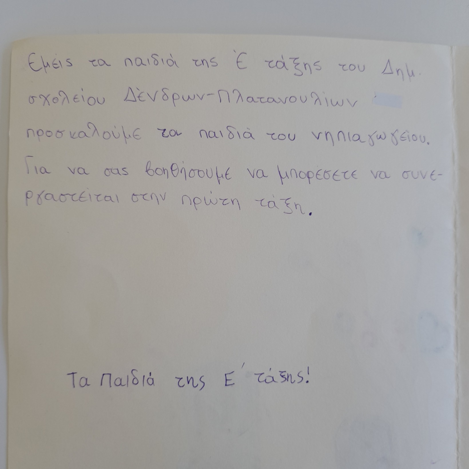 - Πρόσκληση των παιδιών της Ε΄ Δημοτικού προς τα νήπια