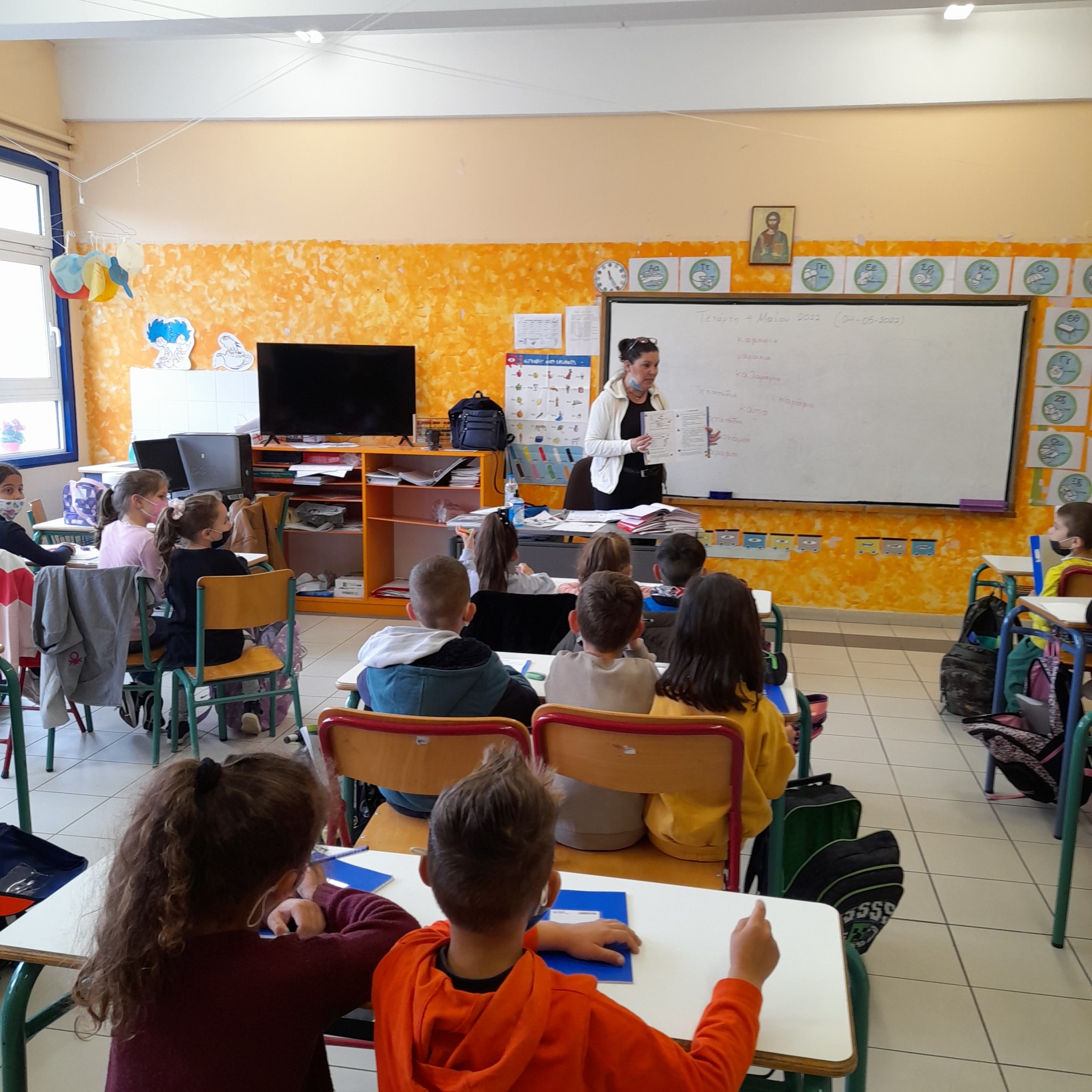 - Τα νήπια επισκέφθηκαν την Α΄ τάξη του Δ.Σ. και συμμετείχαν στο μάθημα της γλώσσας και των μαθηματικών.