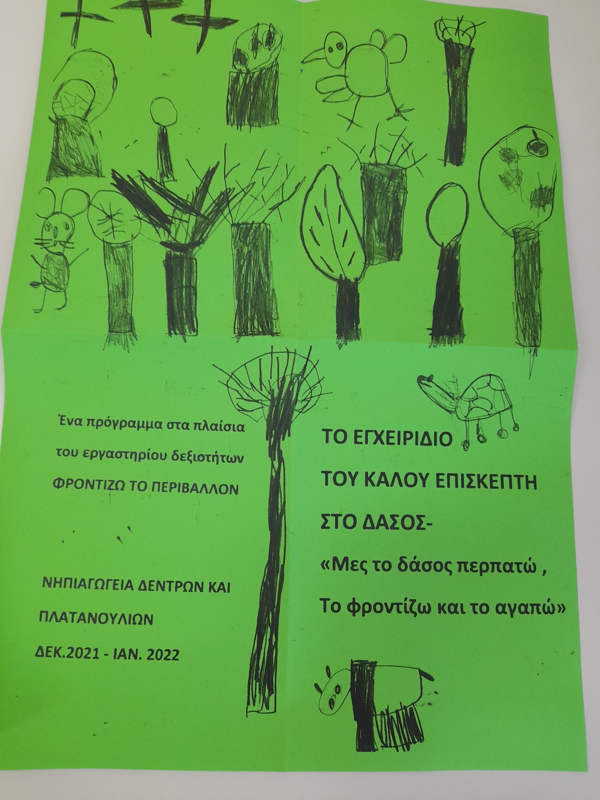 - Στο πλαίσιο της υλοποίησης του 2ου εργαστηρίου δεξιοτήτων με θέμα το “δάσος”, τα νήπια επισκέπτονται τις τάξεις του Δημοτικού Σχολείου Δένδρων-Πλατανουλίων και τους προσφέρουν αφίσες και άλλο υλικό που δημιούργησαν.