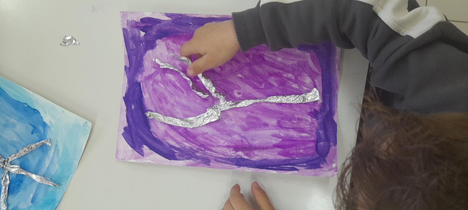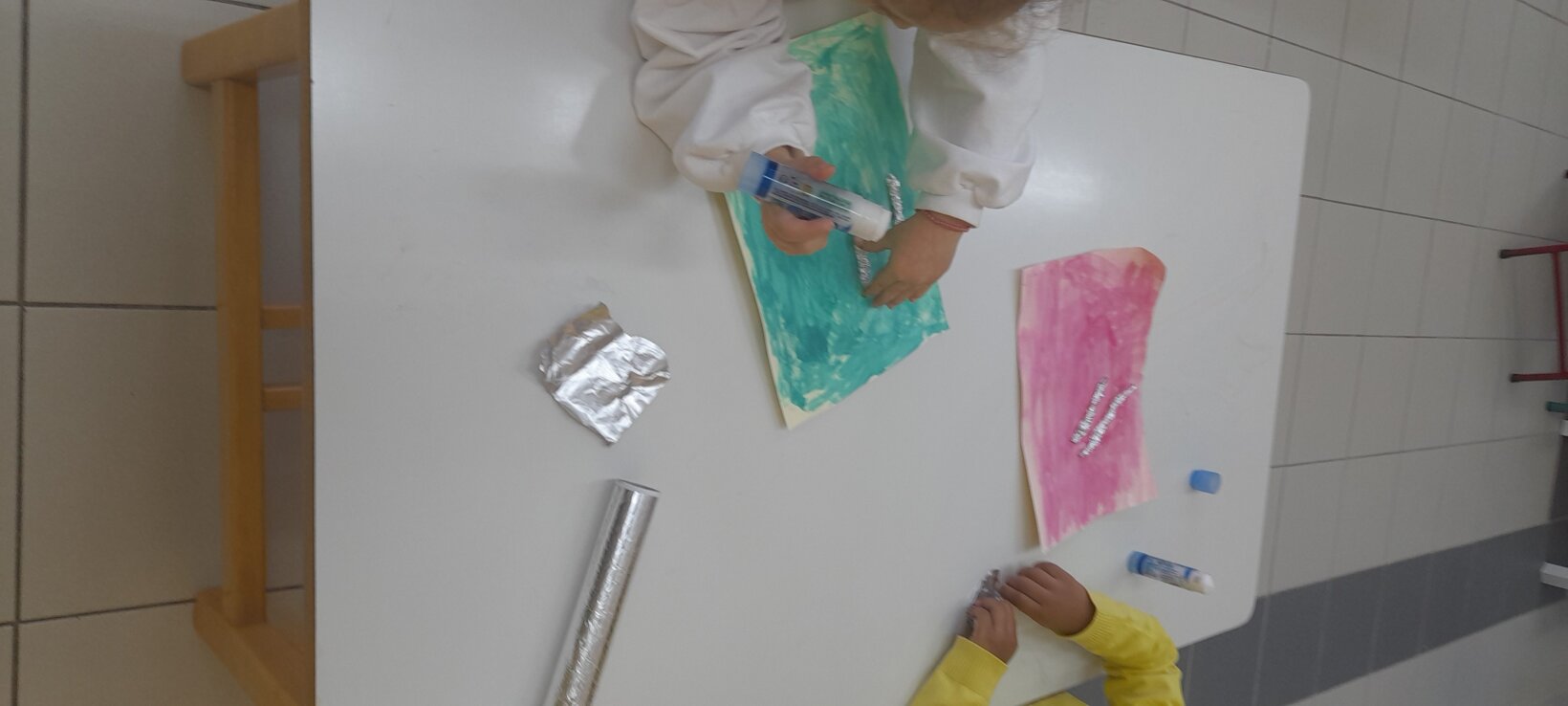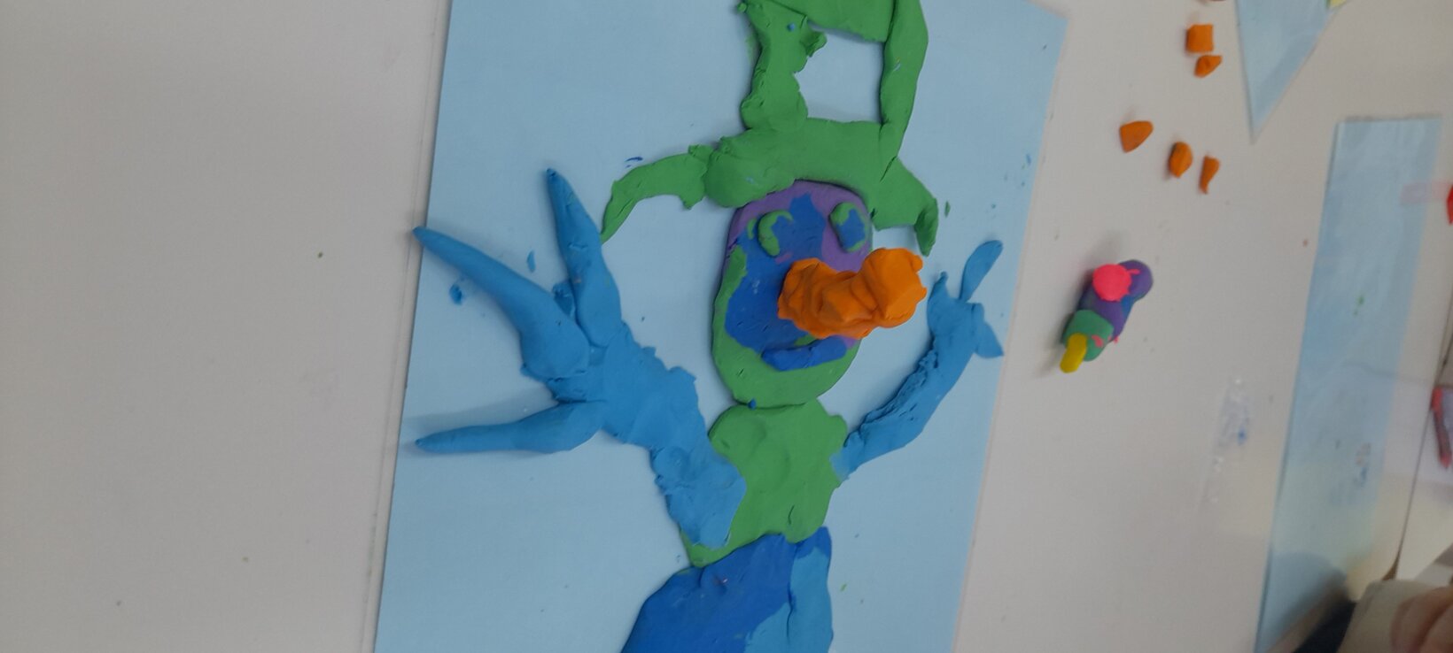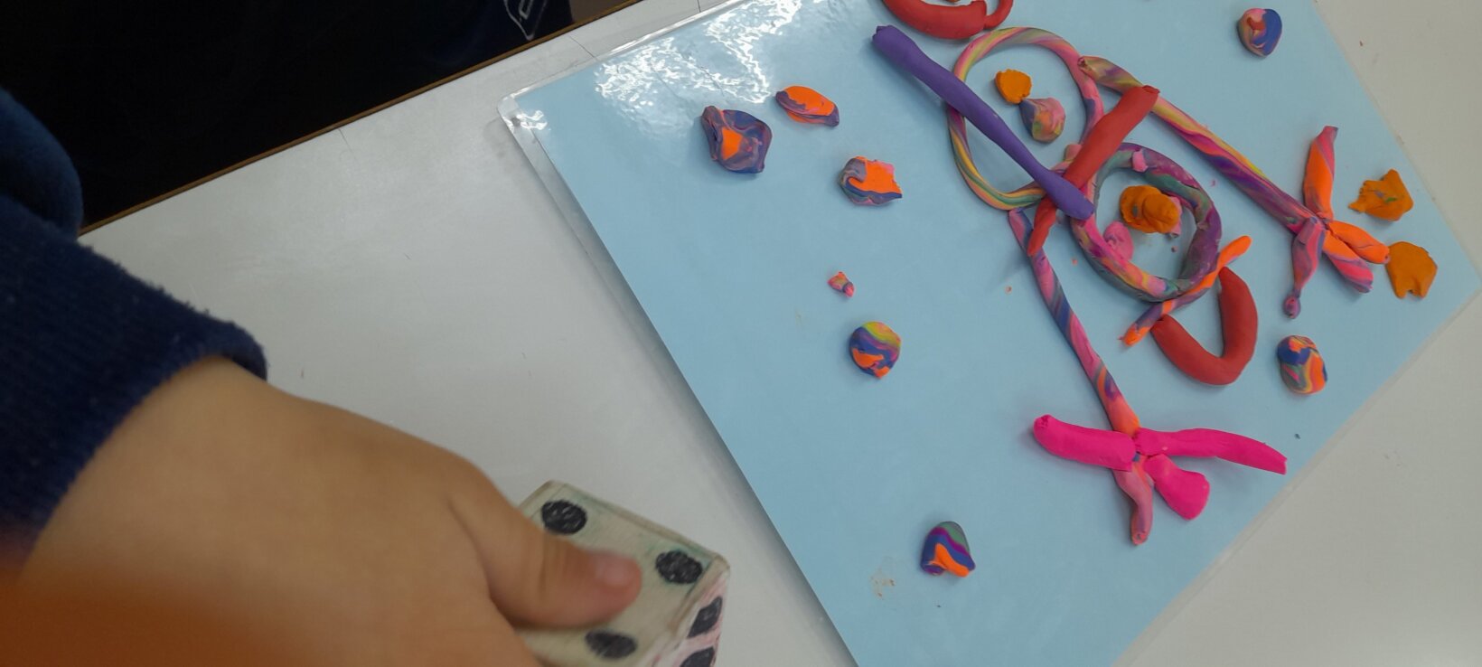 Tο ίδιο παιχνίδι το συνεχίζουν σε ζευγάρια , αφού πρώτα φτιάξουν με πλαστελίνη το ένα παιδί το σπουργίτι και το άλλο , το χιονάνθρωπο.
