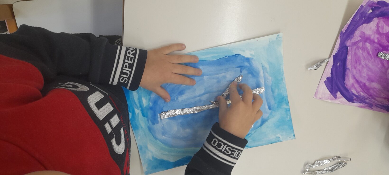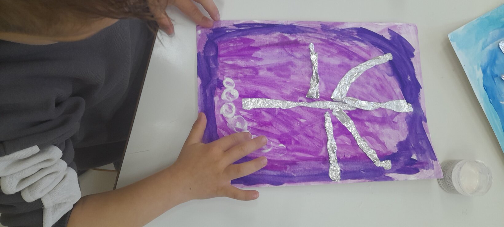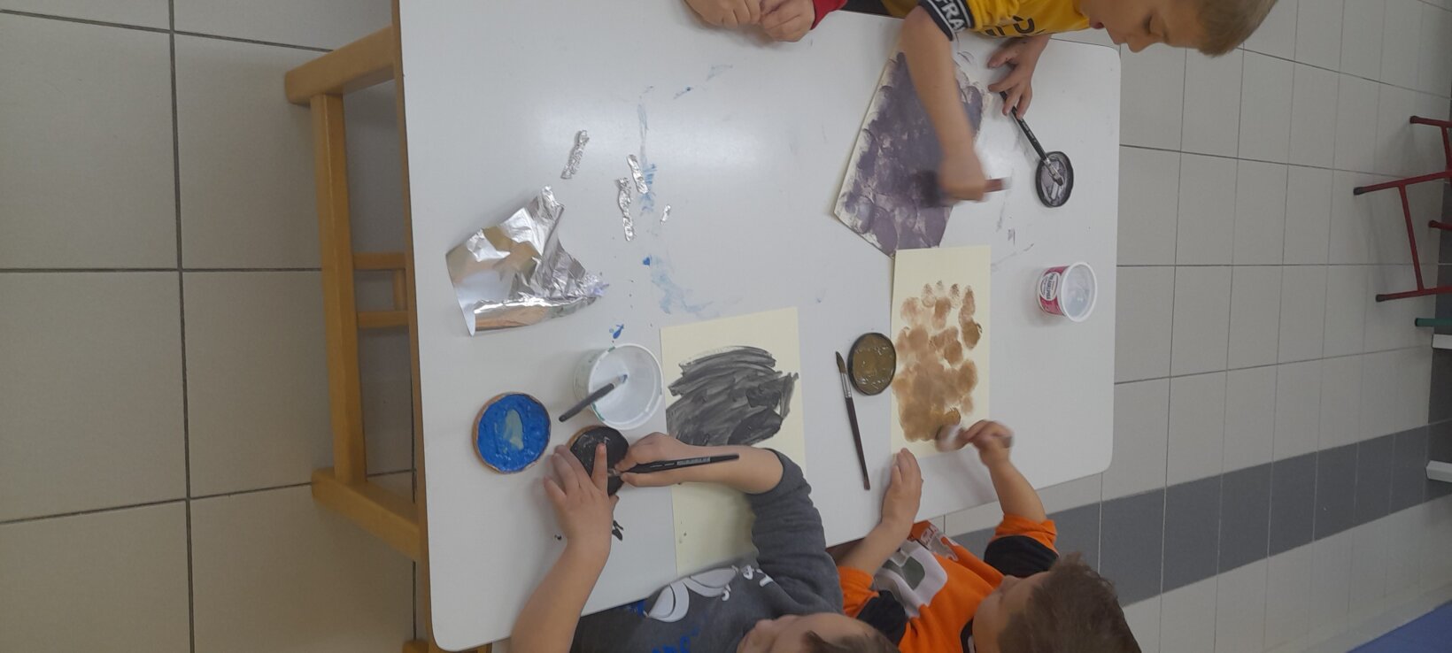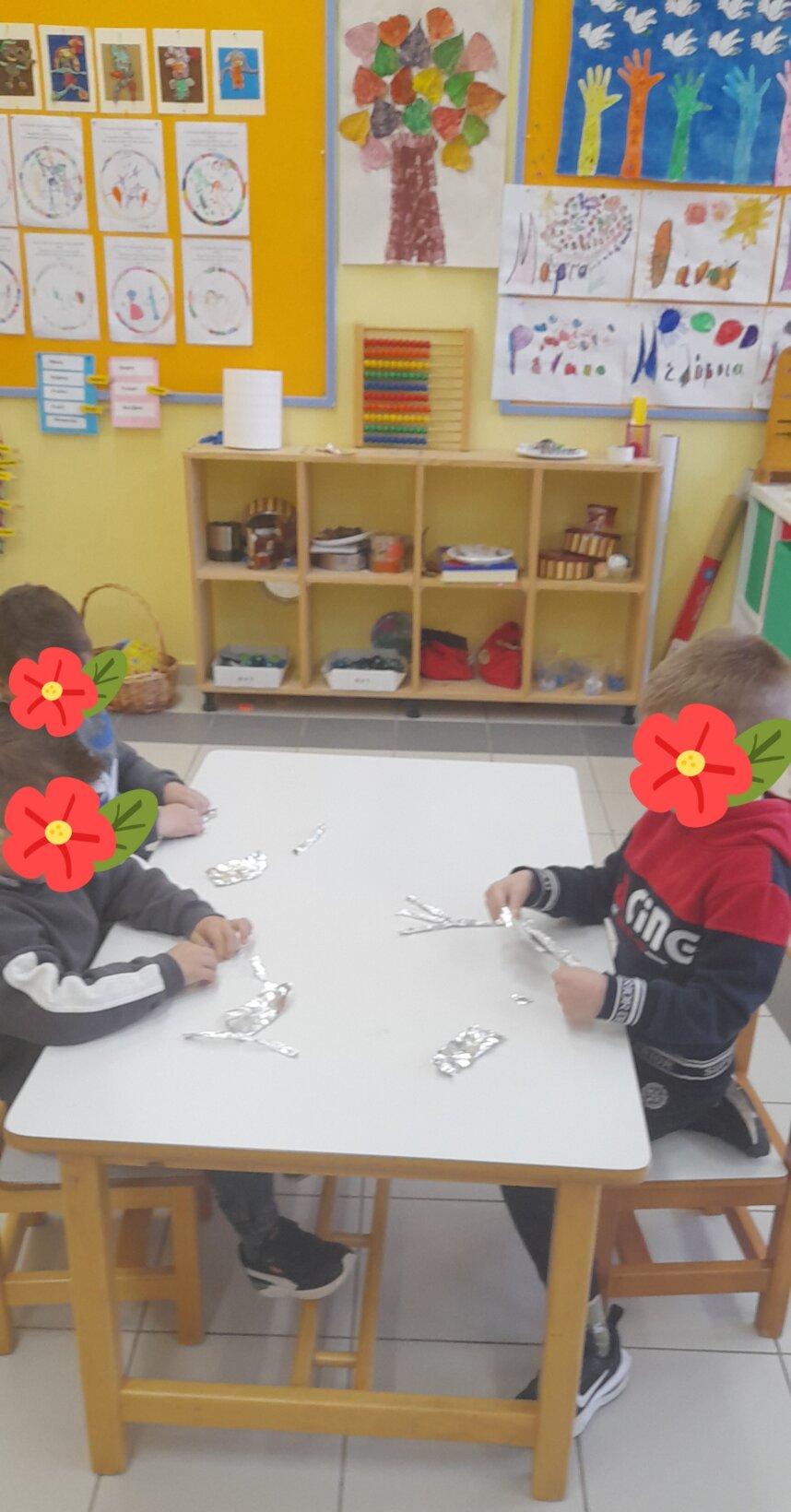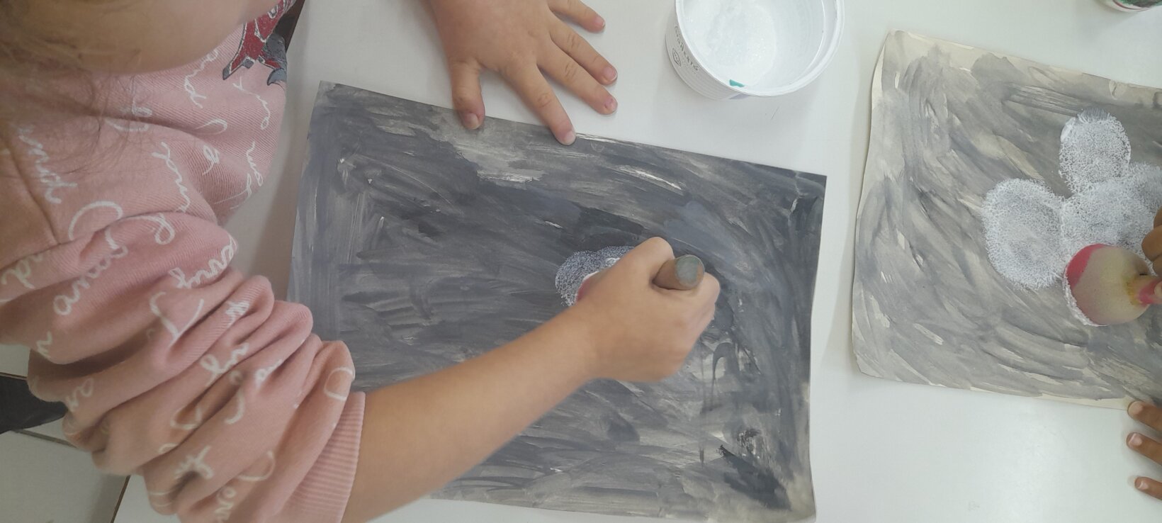 Tο ίδιο παιχνίδι το συνεχίζουν σε ζευγάρια , αφού πρώτα φτιάξουν με πλαστελίνη το ένα παιδί το σπουργίτι και το άλλο , το χιονάνθρωπο.