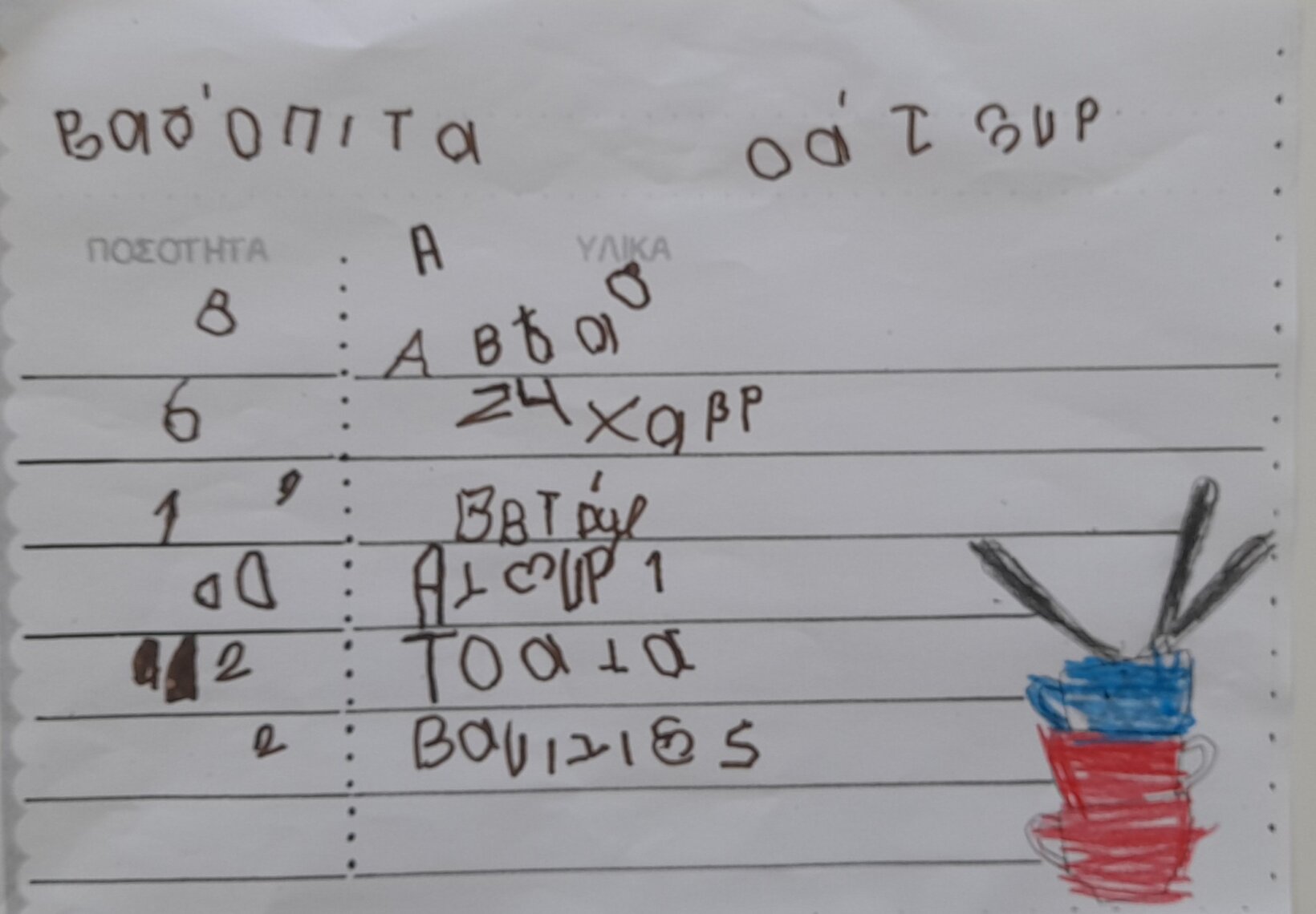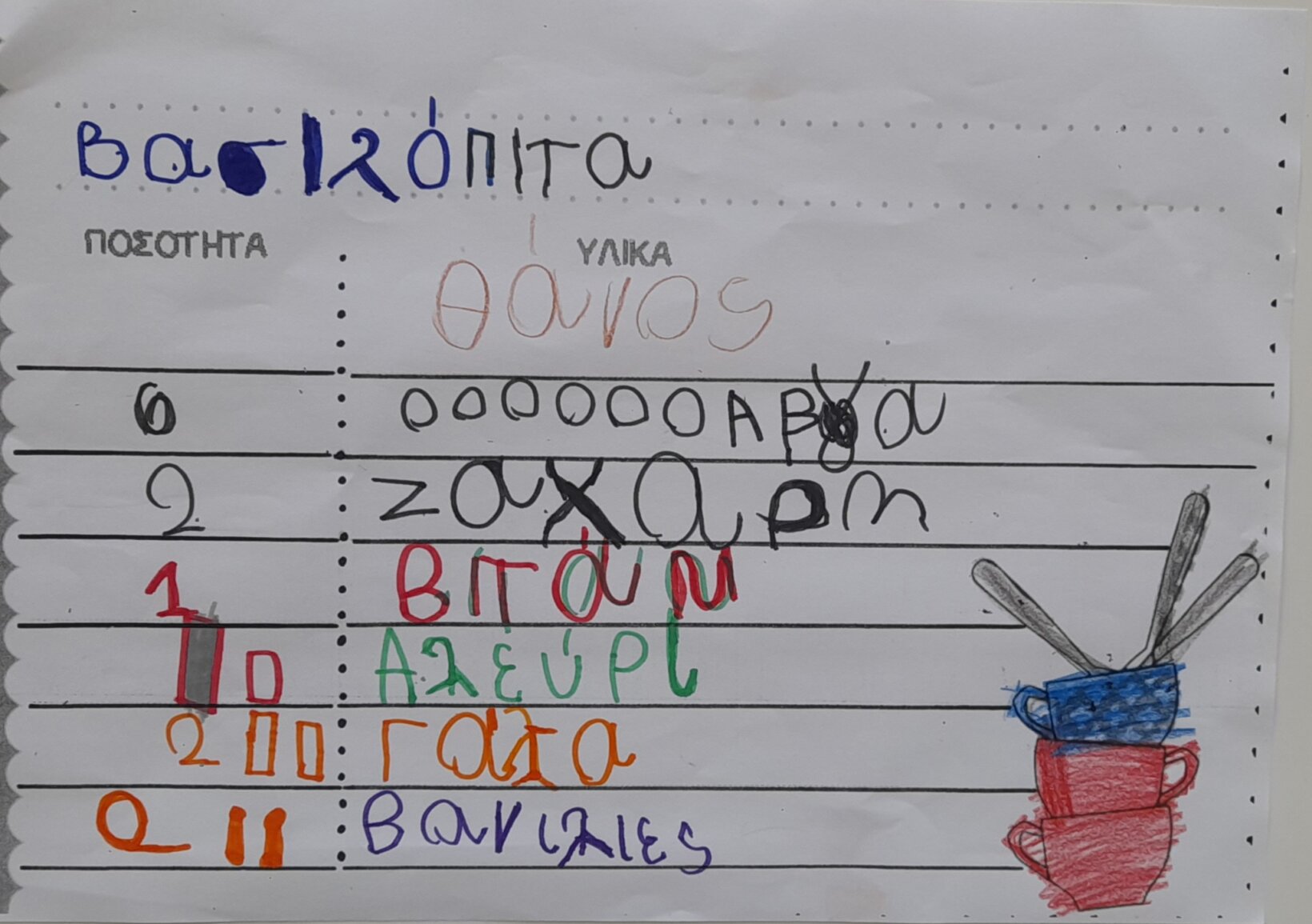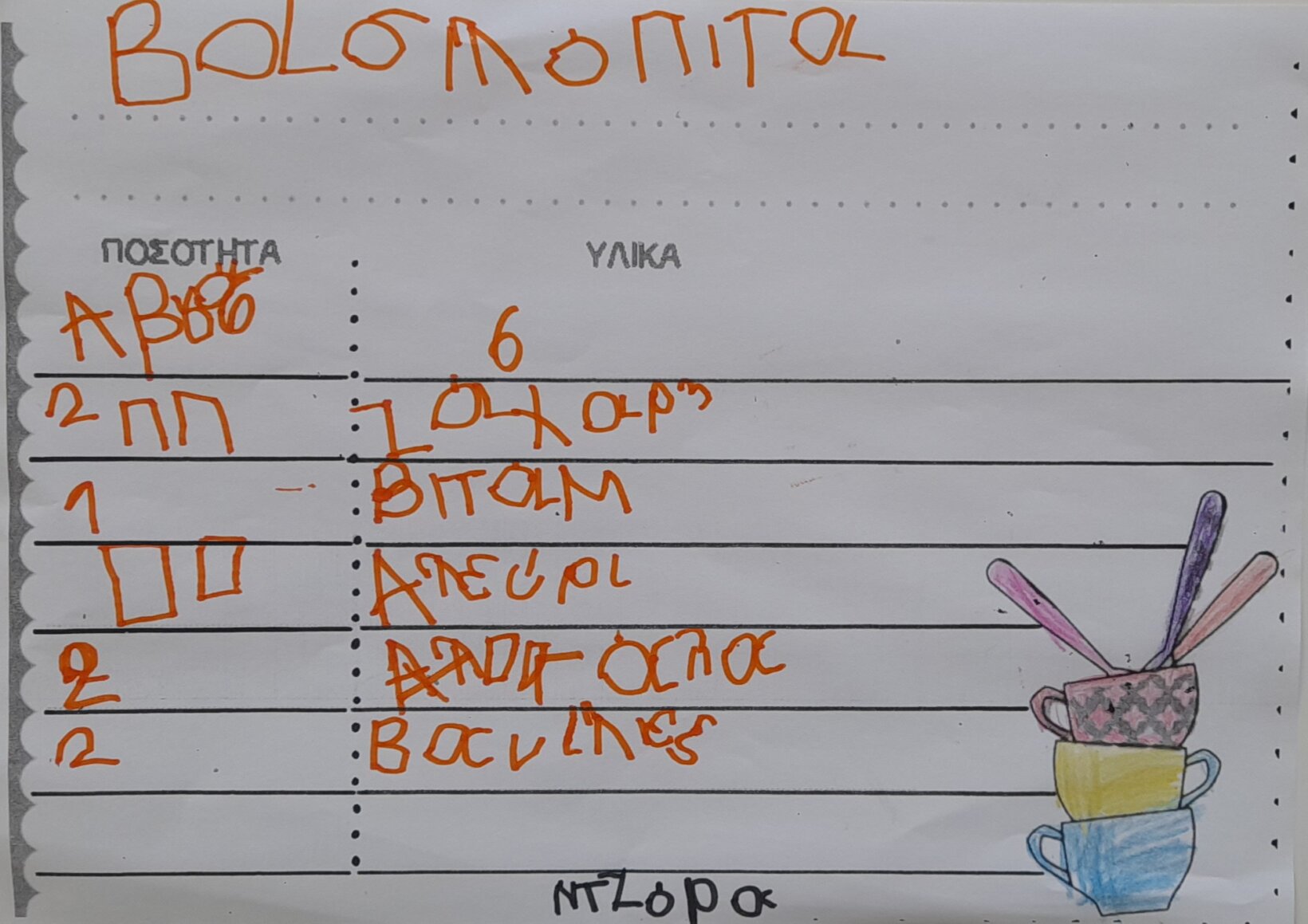 Περιμένοντας να ψηθεί, έγραψε το κάθε παιδί όπως μπορεί τη συνταγή.