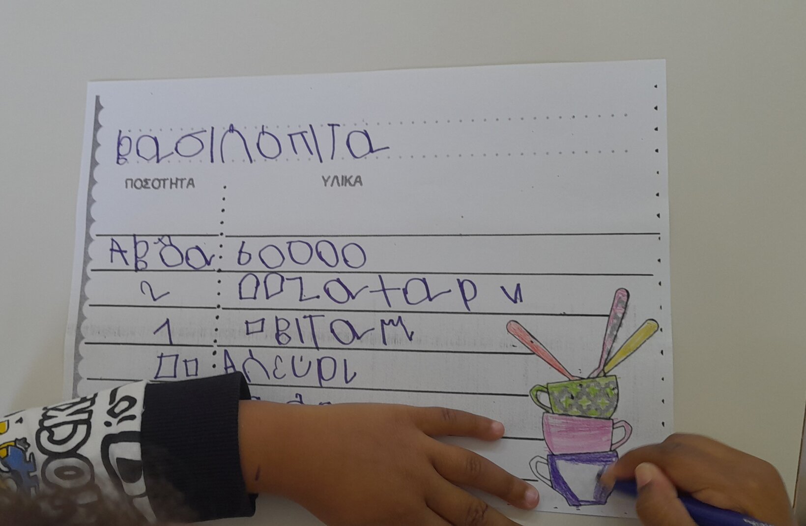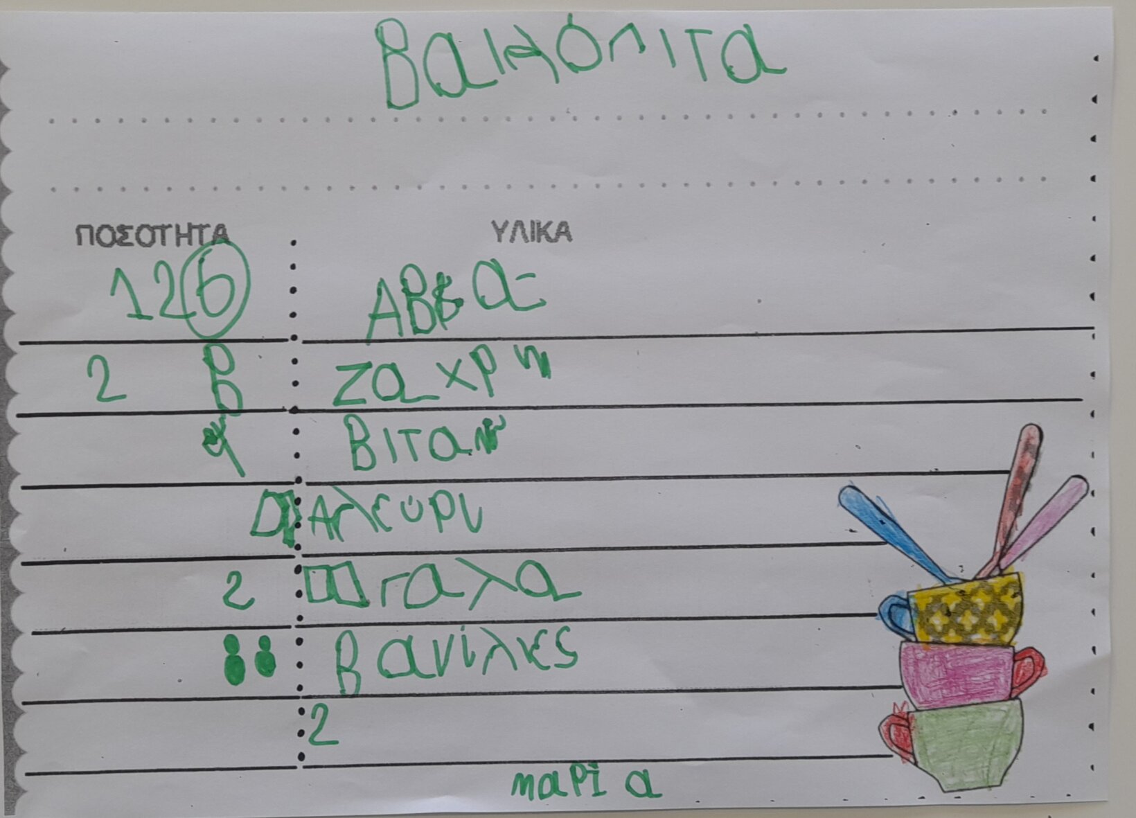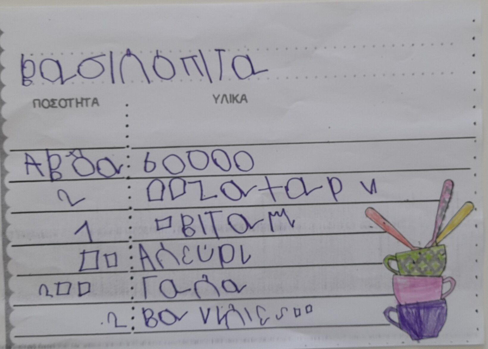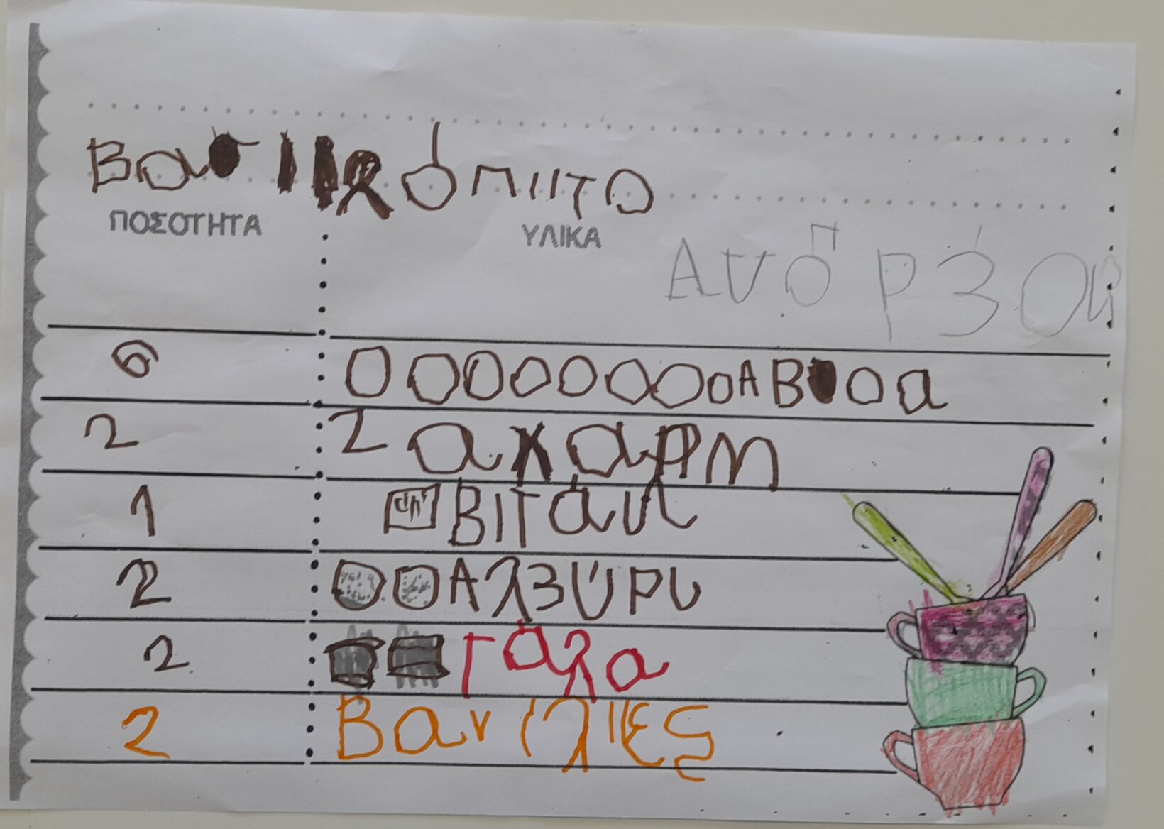 Περιμένοντας να ψηθεί, έγραψε το κάθε παιδί όπως μπορεί τη συνταγή.