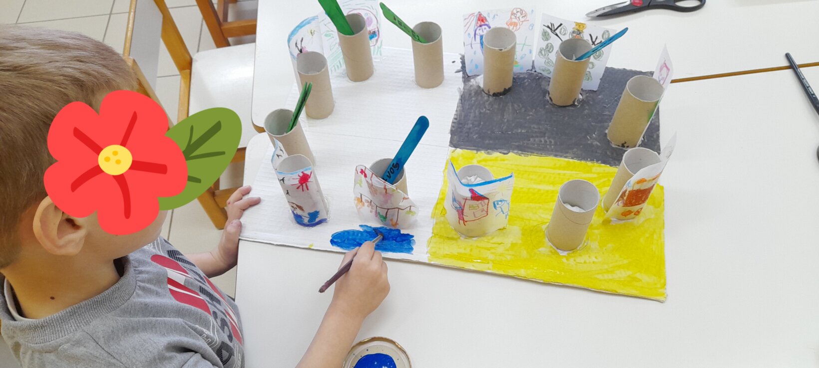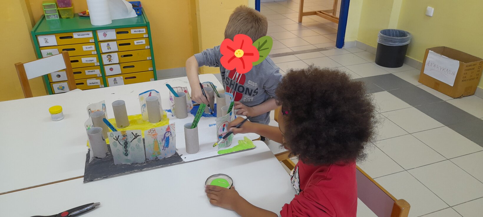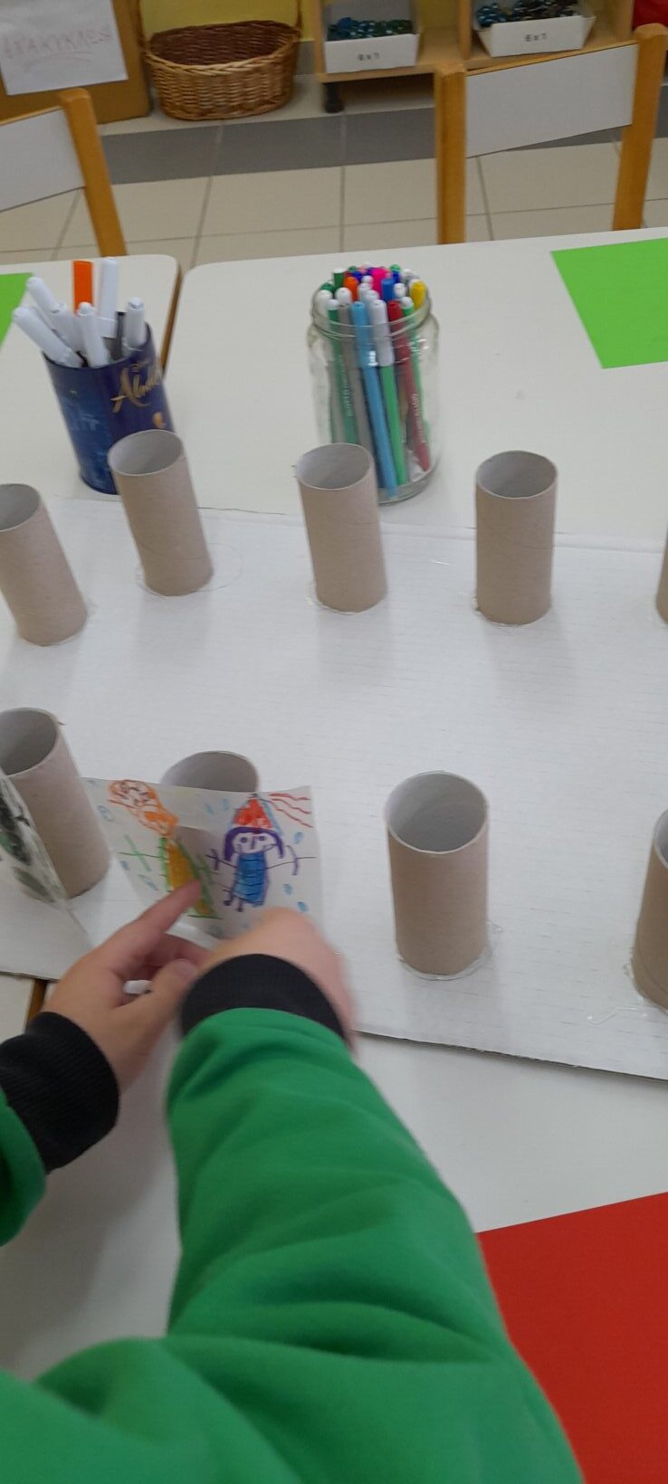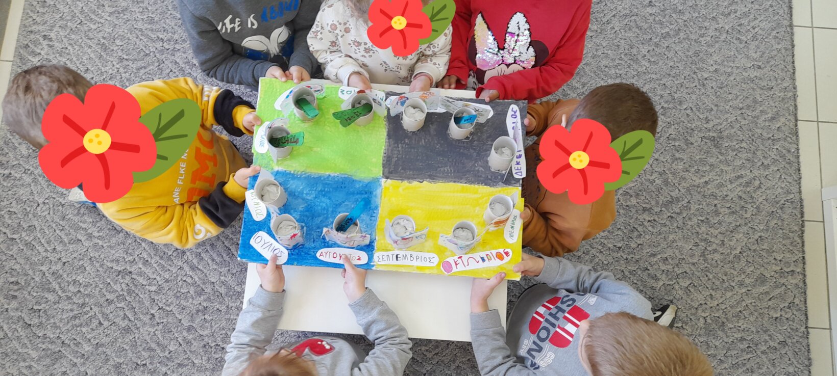 Μετά το παιχνίδι ήρθε η ώρα για δημιουργία !Αποφασίσαμε να κάνουμε τον κύκλο του χρόνου με τους 12 μήνες , χρησιμοποιώντας ανακυκλώσιμα υλικά (χαρτόκουτα και ρολά υγείας). Τα παιδιά διάλεξαν τον αγαπημένο τους μήνα και ζωγράφισαν το χαρακτηριστικό του…