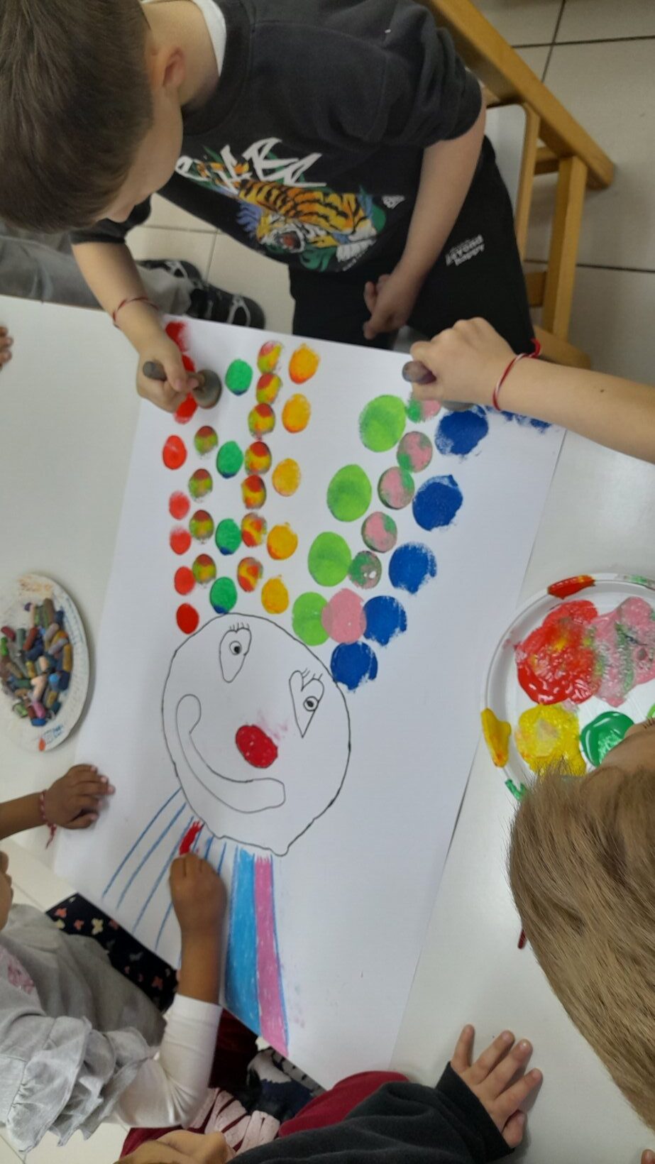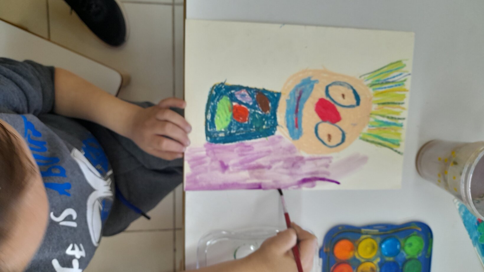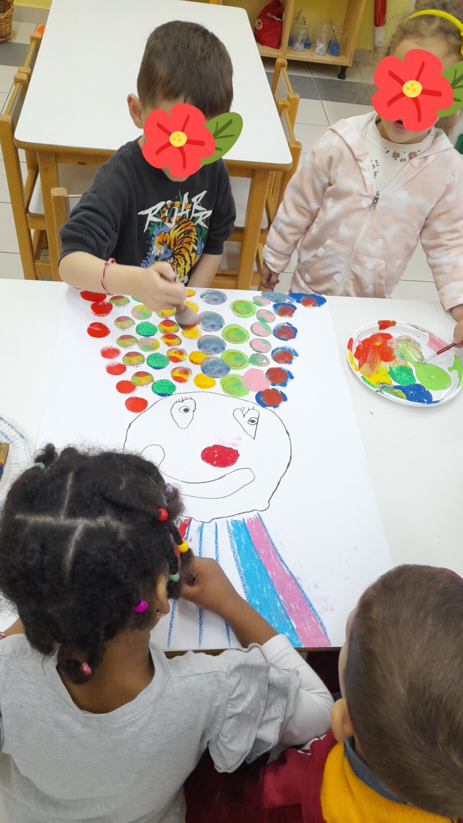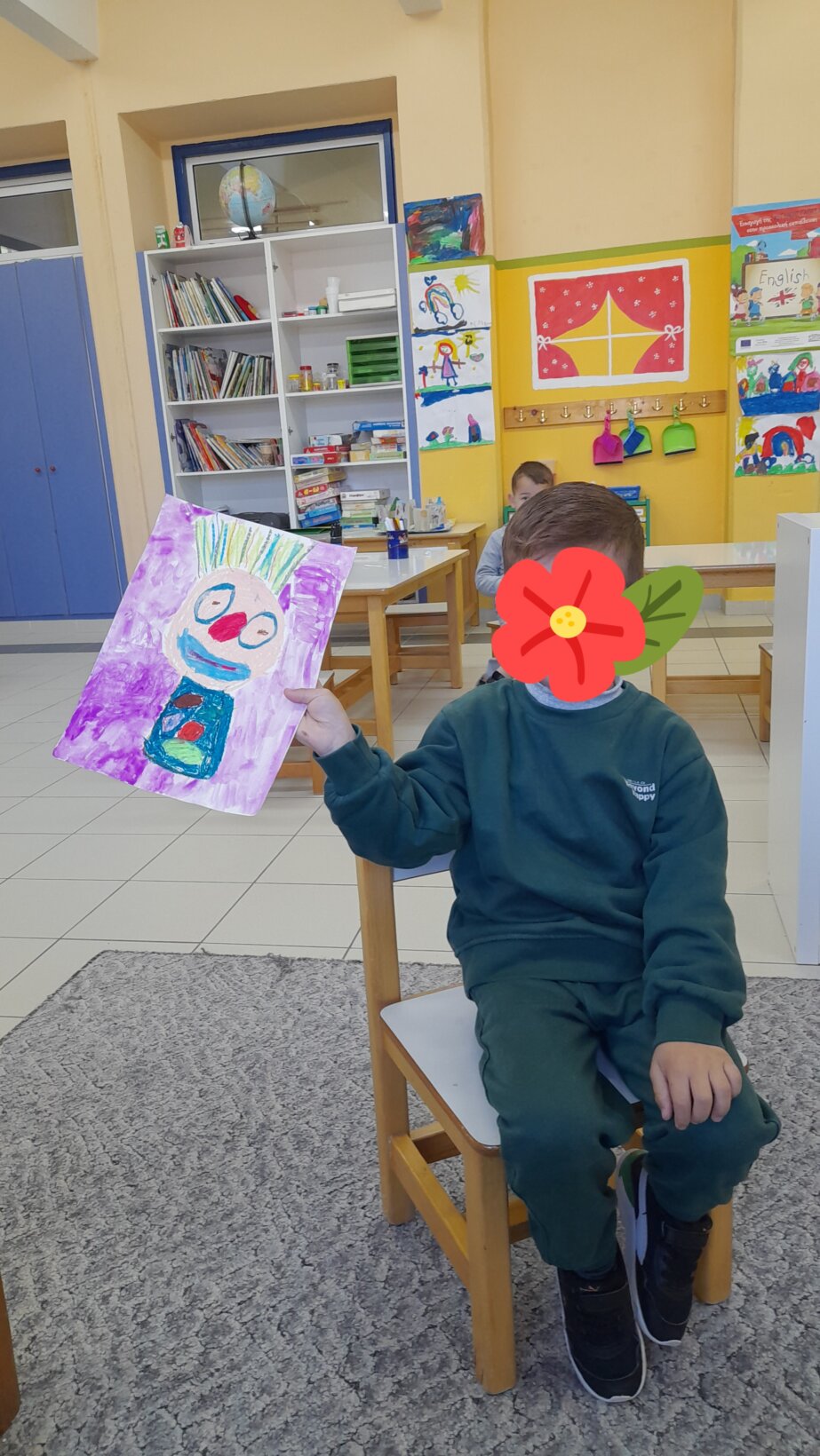 - Απόκριες χωρίς κλόουν δε γίνεται!!!Τα παιδιά συνεργάστηκαν και δημιούργησαν το πορτραίτο ενός κλόουν με ζωγραφική και τυπώματα