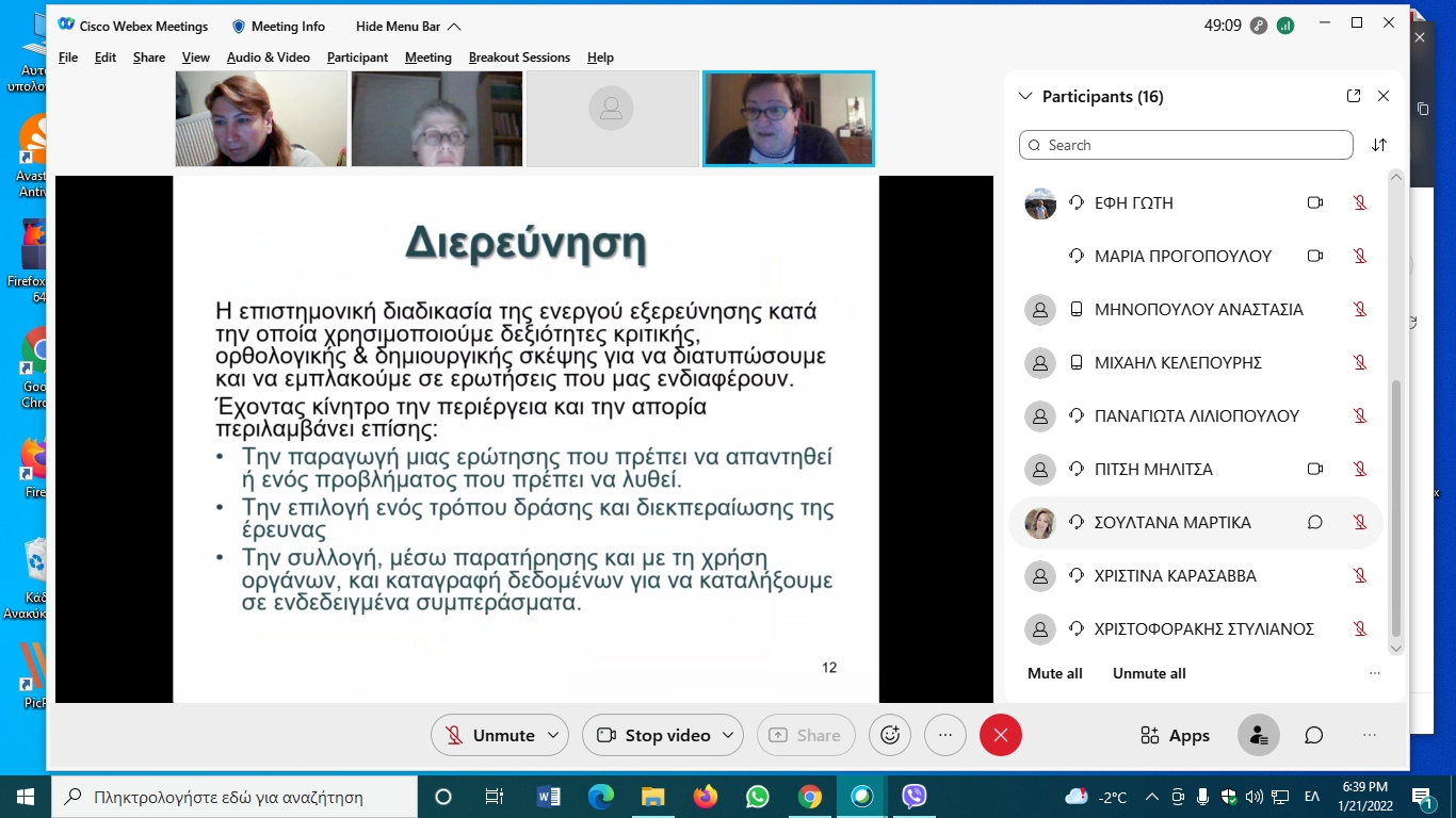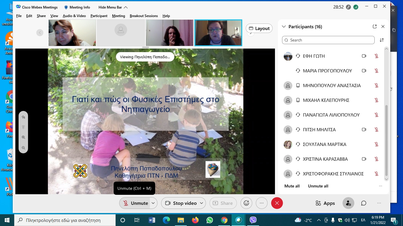 Στα πλαίσια του σχεδίου δράσης του Νηπιαγωγείου μας “Δημιουργία δικτύου σχολείων” με στόχο την πραγματοποίηση κοινών δράσεων για το θέμα “Μικροί Ερευνητές στη φύση” παρακολουθήσαμε δύο δίωρες επιμορφωτικές συναντήσεις με την καθηγήτρια του Παιδαγωγικού Τμήματος Νηπιαγωγών του Πανεπιστημίου Δυτικής Μακεδονίας κ. Πηνελόπη παπαδοπούλου, η οποία μας έδειξε έναν άλλο τρόπο να προσεγγίσουμε τη Φύση και την επιστημονική μέθοδο στο σχολείο, που μας συνεπήρε