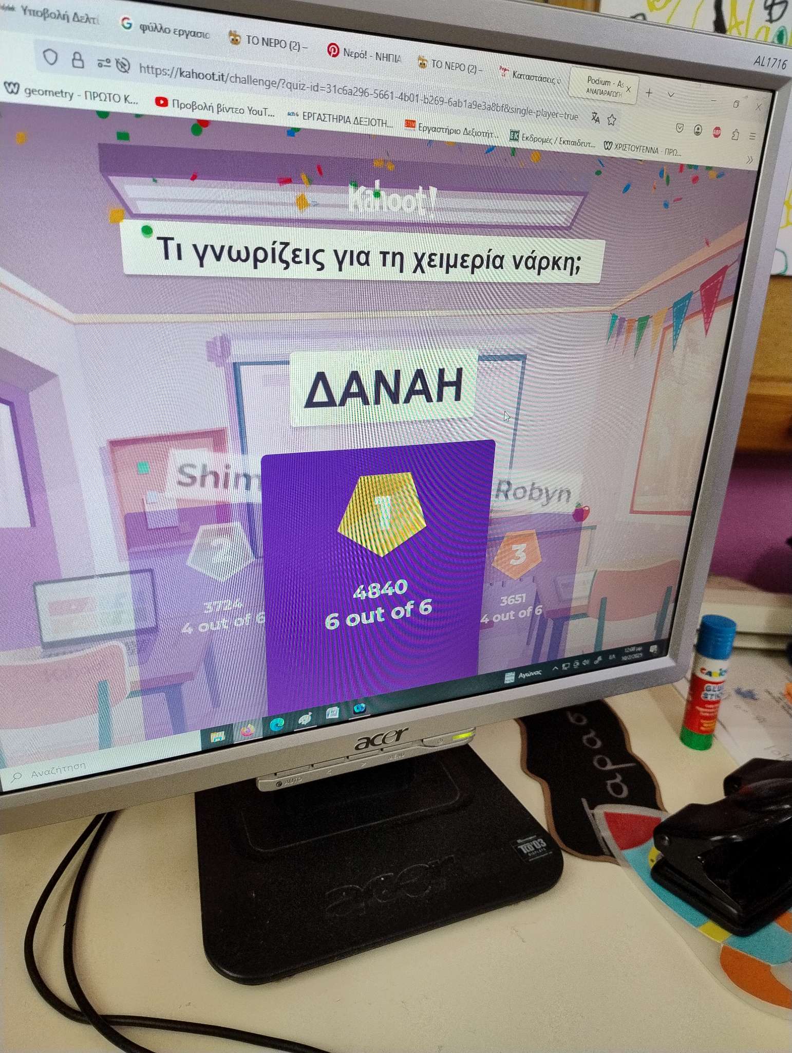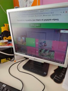 Τελικά, ολοκληρώνοντας το ταξίδι μας στη γνώση των ζώων που πέφτουν σε χειμερία νάρκη, αποφασίσαμε να χρησιμοποιήσουμε έναν άλλον τρόπο αξιολόγησης ή καλύτερα αυτο-αξιολόγησης των παιδιών. Αξιοποιήσαμε το “Kahoot“, ένα διαδικτυακό εργαλείο, με τη βοήθεια του οποίου δημιουργήσαμε ένα ψηφιακό παιχνίδι ερωτήσεων. Συμπεριλάβαμε ερωτήσεις πολλαπλής επιλογής και ερωτήσεις σωστού-λάθους. Κάθε παιδί έγραφε το όνομά του στην έναρξη του παιχνιδιού και καλούνταν να επιλέξει τη σωστή απάντηση στην ερώτηση που του διαβάζαμε. Επιλέξαμε οι διαθέσιμες απαντήσεις να δίνονται στα παιδιά με εικόνες, διευκολύνοντας την κατανόηση και την αυτονομία τους στο παιχνίδι. Πραγματικά, η ανταπόκριση των παιδιών ήταν εκπληκτική και ζητούσαν να το παίξουν και κατά το ελεύθερο παιχνίδι στην τάξη. Σταδιακά, η παρουσία της εκπαιδευτικού δίπλα τους ήταν περιττή και βοηθούσαν το ένα το άλλο “διαβάζοντας” τις ερωτήσεις, όπως τις θυμόντουσαν.
