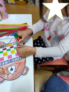 Αρχικά, εξηγήσαμε στα παιδιά ότι θα ξεκινήσουμε μία δραστηριότητα, ένα παιχνίδι με στόχο να βοηθήσουν ένα παιδί αλλά και ένα παπάκι να βρουν τον δρόμο για το σπίτι τους. Προκειμένου να το καταφέρουν αυτό είπαμε ότι το κάθε παιδί θα χρειαστεί μία κούκλα βοηθό, την οποία θα φτιάξουν στη συγκεκριμένη συνάντηση.