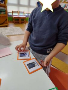Επίσης, δημιουργήσαμε κύβους με εικόνες και το κάθε παιδί έριχνε τον κάθε κύβο μία φορά, για να φτιάξει τη δική του ιστορία έχοντας ως βάση τα τρία στοιχεία που θα του φανερώσουν οι κύβοι.