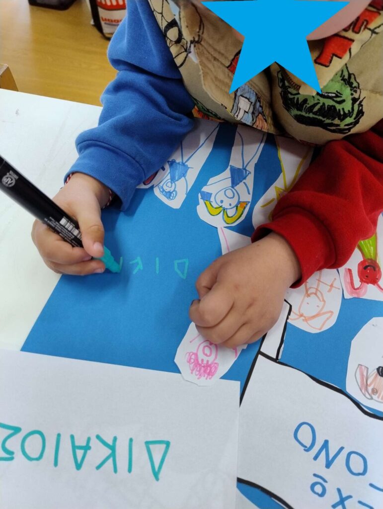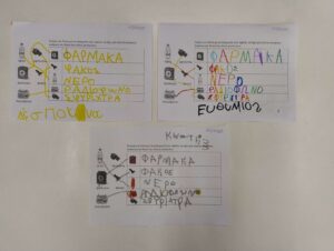 Ταυτόχρονα, μοιράσαμε φωτογραφίες άλλων παιδιών και τα παιδιά κλήθηκαν να αναγνωρίζουν ποιο συναίσθημα προβάλλεται, καθώς διατύπωσαν τις ιδέες τους-τις υποθέσεις για τους λόγους που το προκάλεσαν σε κάθε παιδί.