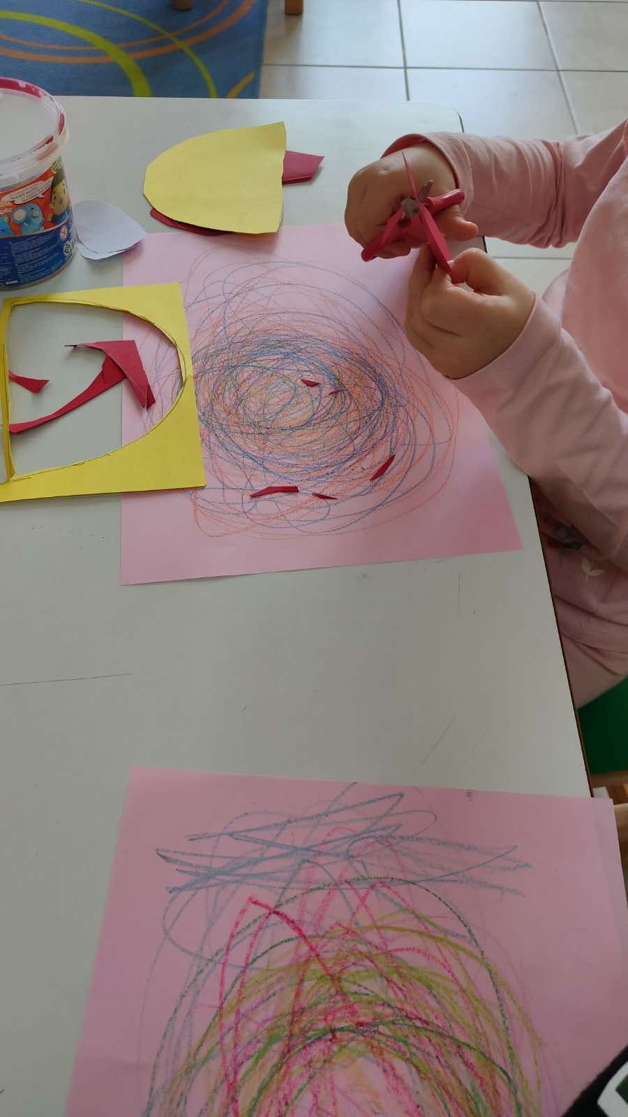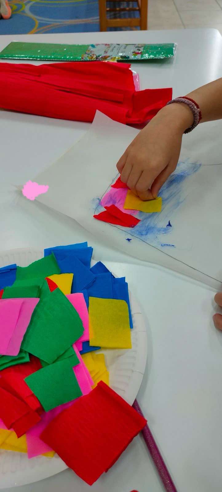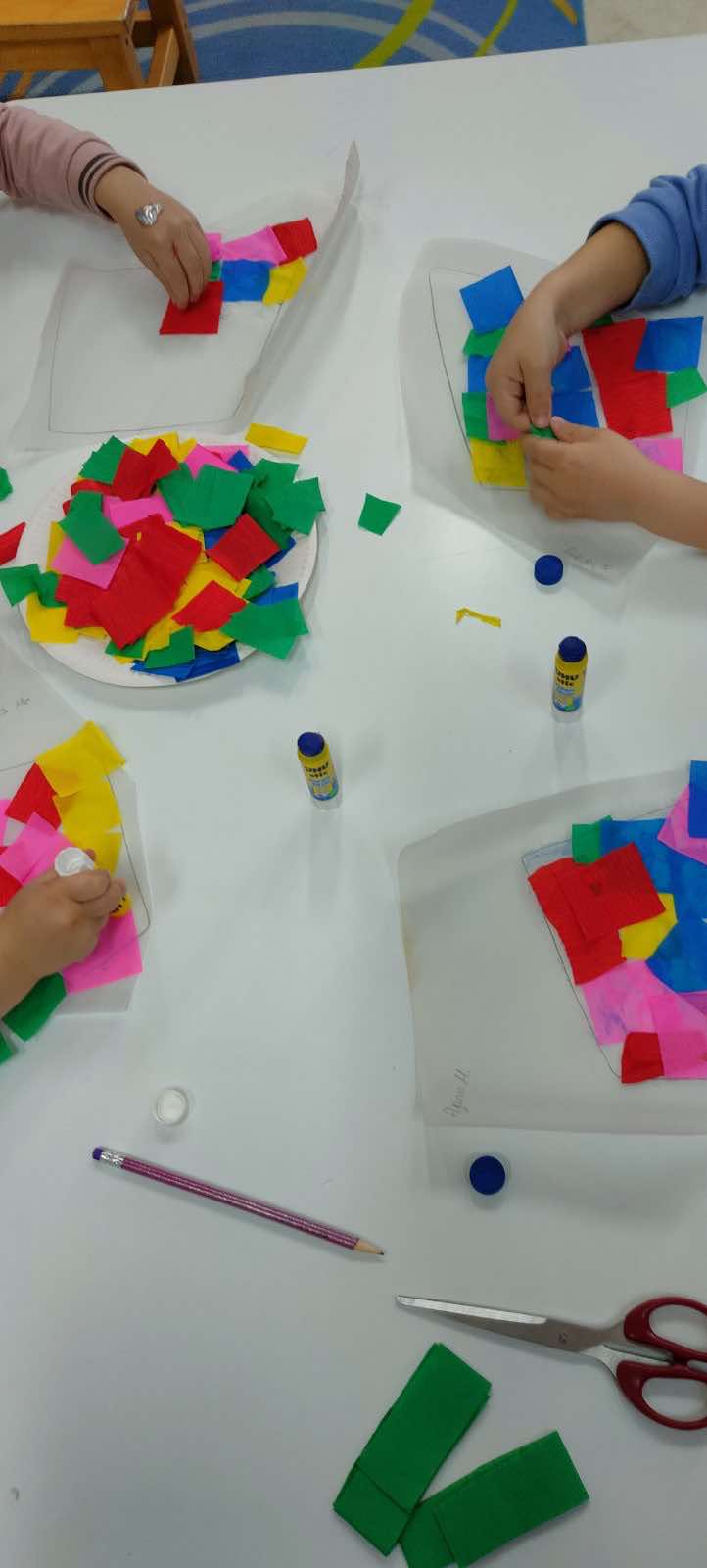 Δημιουργήσαμε ζουμερά καρπούζια! Βάψαμε κίτρινα τα χαρτιά με τέμπερες και χρησιμοποιώντας χαρτόνια, γλασέ χαρτιά και την τεχνική του κολάζ, φτιάξαμε κομμάτια καρπουζιού που μοσχοβολούσαν καλοκαίρι!