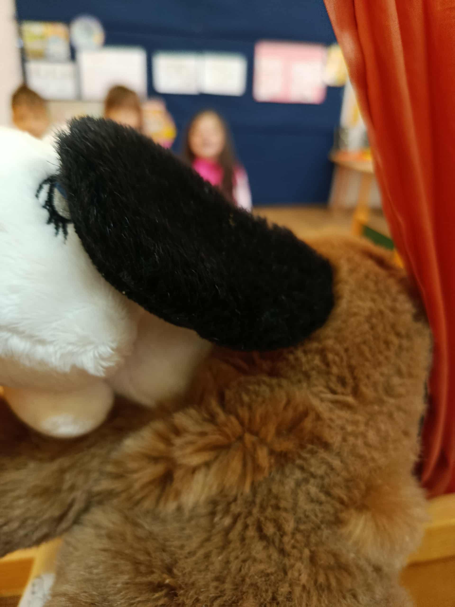 Η πιο ιδιαίτερη στιγμή της ημέρας ήταν όταν η εκπαιδευτικός σύστησε στα παιδιά τις κούκλες-ζωάκια. Με αφορμή την Παγκόσμια Ημέρα Ζώων, τα κουκλάκια, η γατούλα η Ζιζί που νυστάζει και έχει την κουβερτούλα της συνέχεια μαζί και άλλα ζωάκια, μίλησαν στα νήπια και τους είπαν ακριβώς πώς νιώθουν όταν τα αγαπούν οι άνθρωποι (ασφάλεια, χαρά) αλλά και όταν δεν τα αγαπούν (λύπη, φόβο), καλλιεργώντας την ενσυναίσθηση και την έκφραση συναισθημάτων. Είπαν τα ονόματά τους, έκαναν αστεία, αγκαλιές και φιλάκια, προσφέροντας στα παιδιά ένα μοντέλο θετικής αλληλεπίδρασης.