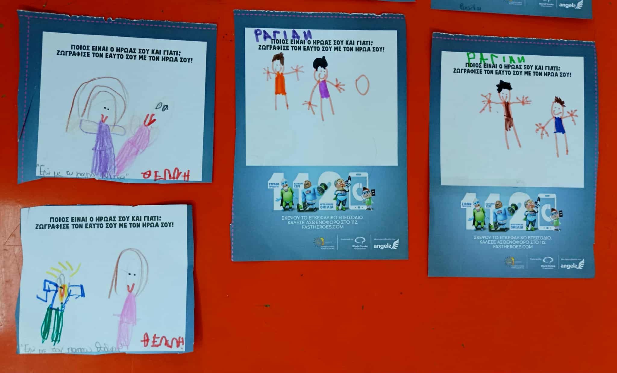 Ζωγράφισαν με θέμα: «Ποιος είναι ο Ήρωάς σου και γιατί: Ζωγράφισε τον Ήρωά σου με τον εαυτό σου». Μέσα από τη ζωγραφική, εξέφρασαν ποιοι είναι οι δικοί τους ήρωες (συχνά οι γονείς, οι παππούδες ή ένας από τους ΧΟΠΑ) και γιατί τους κάνουν να νιώθουν ασφαλείς, συνδέοντας έτσι τη φροντίδα της οικογένειας με την κοινωνική προστασία.