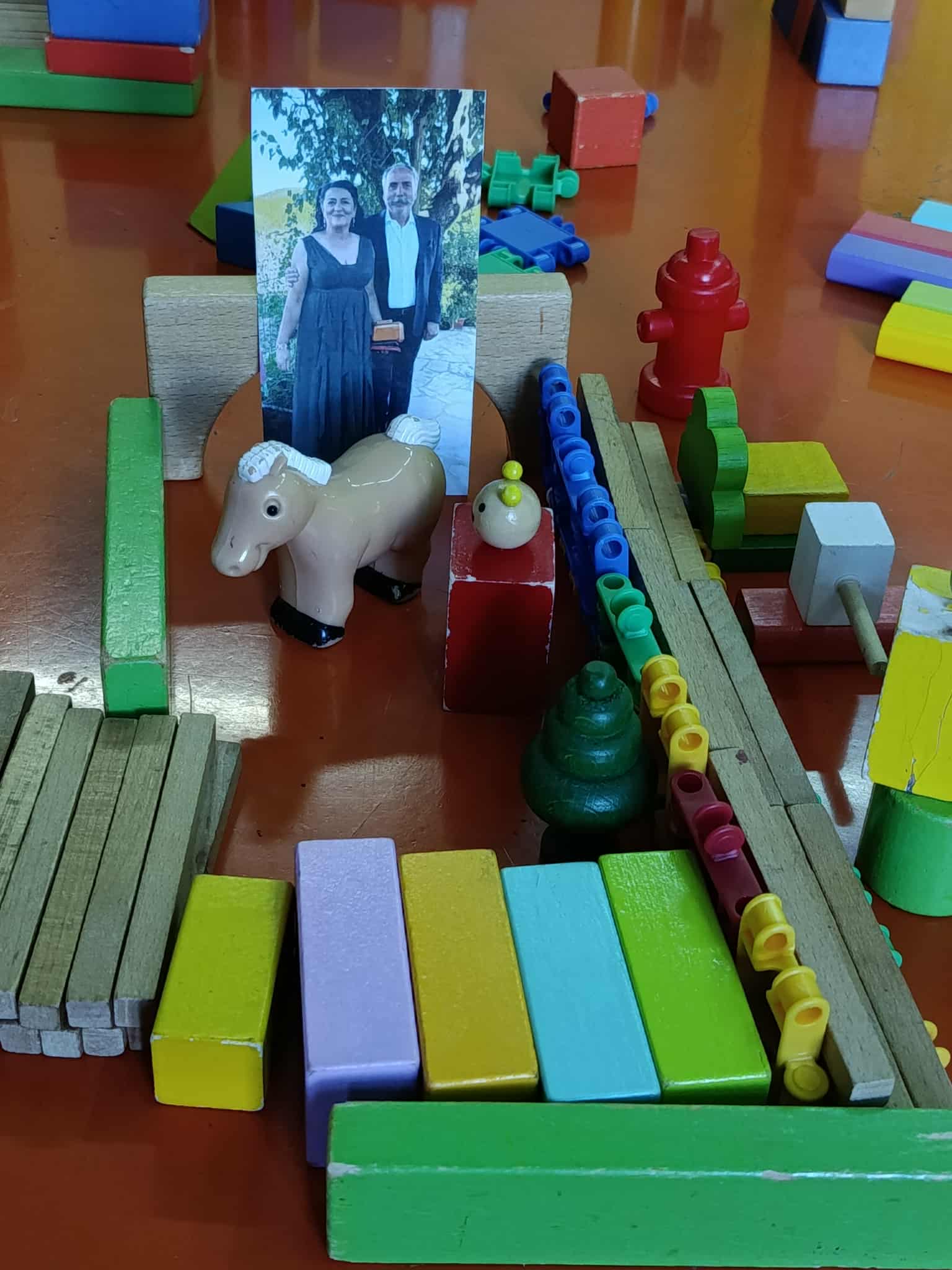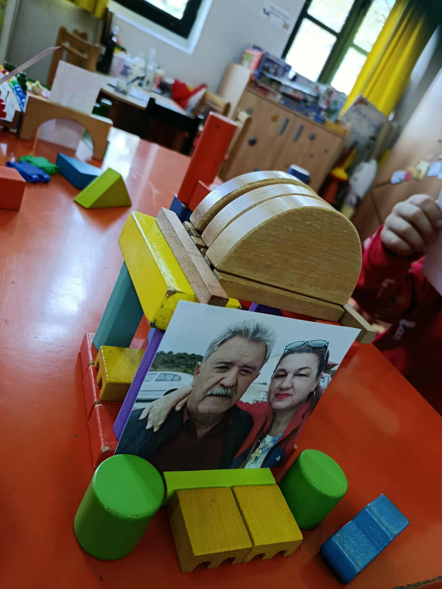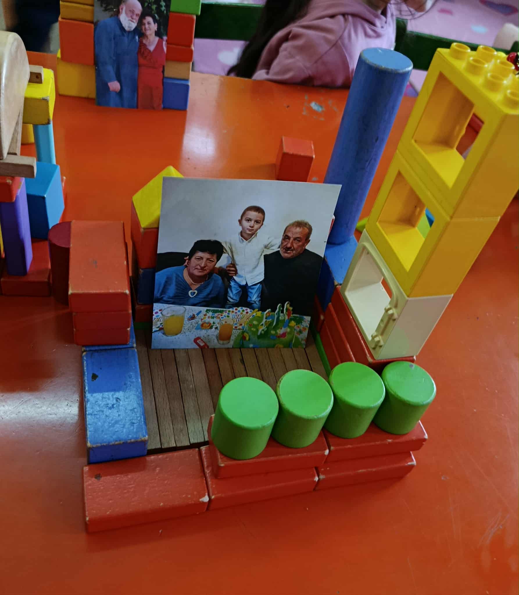 Χρησιμοποιώντας τα τουβλάκια, τα παιδιά ανέλαβαν να κτίσουν τα σπίτια των παππούδων τους. Κάθε κατασκευή ήταν μοναδική, γεμάτη φροντίδα και λεπτομέρεια, αντανακλώντας τη ζεστασιά και την αγάπη που λαμβάνουν στα δικά τους σπίτια. Το πιο συγκινητικό βήμα ήταν η προσθήκη φωτογραφιών των αγαπημένων τους προσώπων μέσα στα σπιτάκια, μετατρέποντας τις άψυχες κατασκευές σε μικρές εστίες συναισθημάτων.