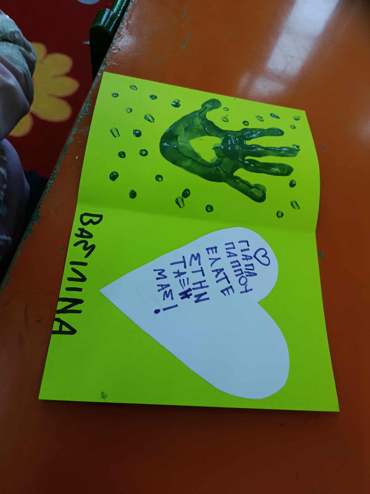 Το Δώρο μας: Ακολούθησε η κατασκευή του δώρου, μιας κορνίζας-ενθυμίου, στην οποία τα παιδιά κόλλησαν τη φωτογραφία του παππού/γιαγιάς και έγραψαν τη φράση «Σε αγαπώ». Με αυτό τον τρόπο, τα παιδιά προσέφεραν ένα χειροπιαστό δείγμα ευγνωμοσύνης, ενισχύοντας τους οικογενειακούς δεσμούς.